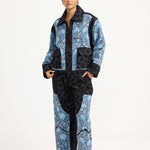 The ‘Rebound’ Handmade Jacket, made entirely by hand with zero electricity, offers a profound exploration of love’s darker undercurrents. Crafted by fourth-generation artisans Hari Om ji and Pankaj Sonawa ji, it tells a story of emotional turbulence—moments where irrational thoughts appear beautiful from a distance but reveal imperfections up close. The design subtly conveys the internal conflict of fear and vulnerability masked by outward perfection. Through its artisanal block printing and carefully crafted details, the piece evokes the raw, unfiltered emotions that often go unnoticed in the complexities of love, making it a powerful visual representation of the human experience.