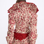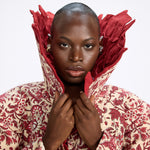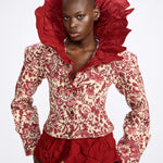 A royal bloom in motion, the Phoolon ki Rani Jacket is a celebration of fierce femininity rooted in floral grace. Handcrafted with heritage block prints and sculpted with dramatic flares, it’s a piece that commands presence and holds stories in every pleat. The exaggerated collar and waist ruffles echo a regal rebellion—bold, unapologetic, yet intricately beautiful. At Farak, this is where power meets poetry, stitched in petals and pride.