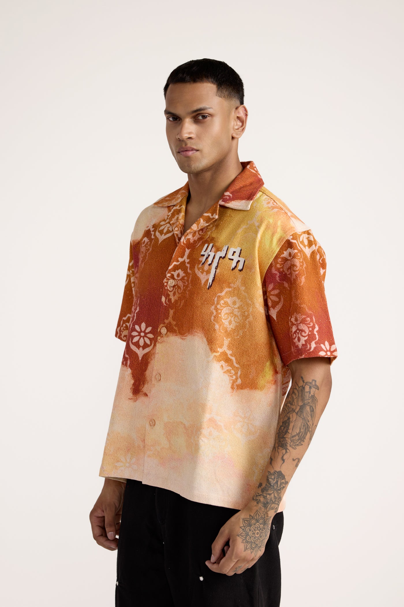 Rooted in contrast, the Dichotomy 2.0 Shirt brings together earthy tradition and modern technique. Handwoven from 100% cotton and digitally printed with a sun-washed palette, it explores the tension between old and new — soft and bold, calm and chaotic. Its relaxed fit offers comfort, while the layered hues evoke the warmth of golden hours and burnt skies. Crafted over 8 mindful hours, this shirt is a quiet rebellion wrapped in ease.
