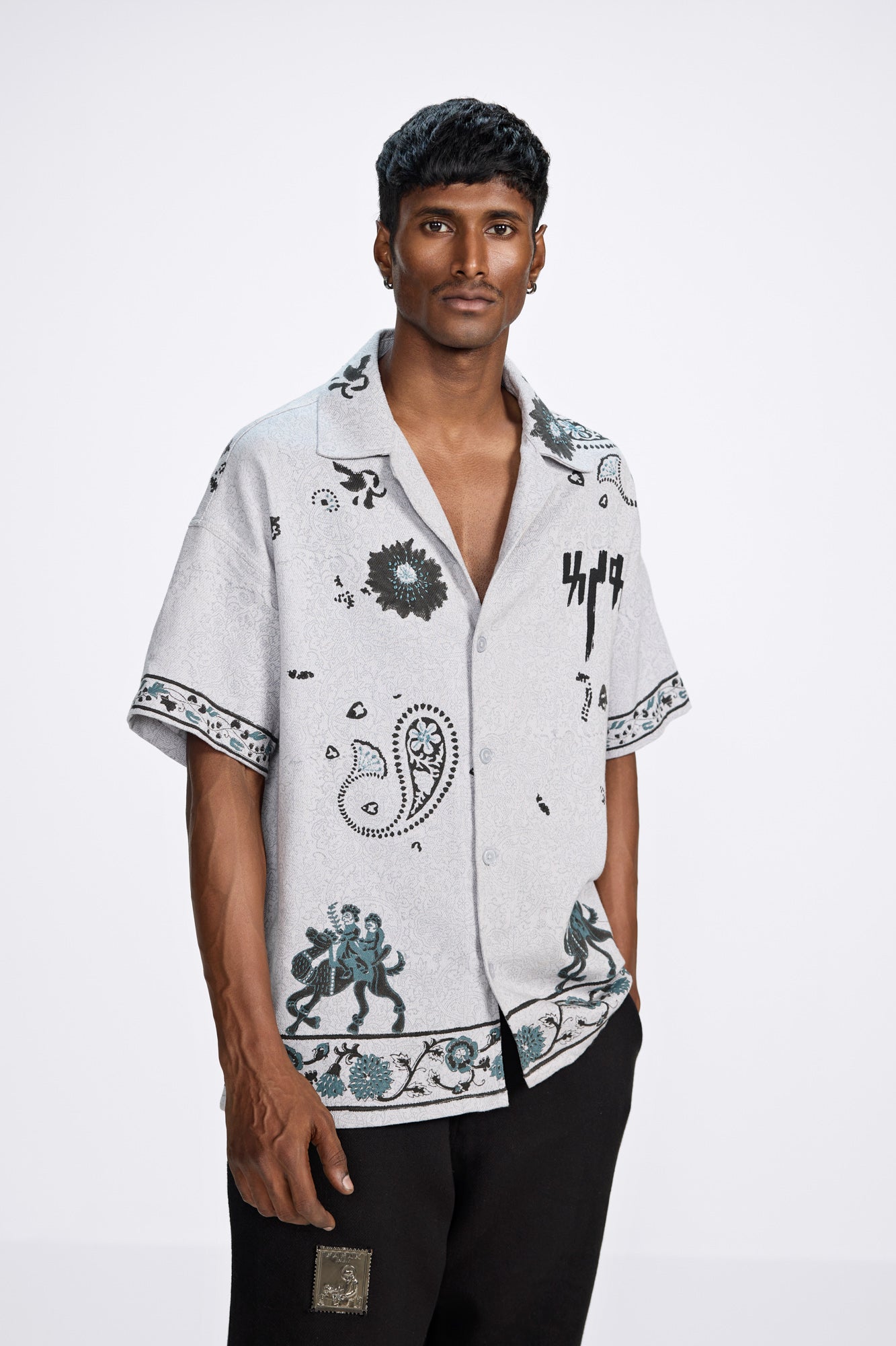 Where craft meets character — this shirt is a tapestry of Indian tradition, handwoven from 100% cotton using age-old looms. Adorned with hand block prints and intricate Kantha embroidery, it carries the mark of 12 hours of mindful making. The relaxed fit and soft texture make it effortless to wear, while every motif whispers stories of heritage and handiwork. A quiet yet compelling expression of the artisan’s hand — and the soul of Farak.