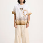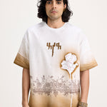 The Burning Flower Handmade Tee is a striking fusion of traditional craftsmanship and modern storytelling, offering a fresh take on age-old techniques. This design embodies the complex emotions of love—fading beauty, obsession, and the inevitable passage into chaos. The burning flower represents a love so intense that it leads to self-destruction, yet finds beauty within that chaos. Each piece is unique, hand-painted, and block-printed, ensuring that no two shirts are the same. The kantha embroidery detailing further highlights the meticulous craftsmanship involved, adding texture and depth to the artistic narrative.