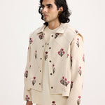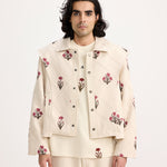Presenting the Sanganeri Block Print Jacket, a delightful fusion of tradition and contemporary style. This jacket features intricate block-printed motifs throughout, meticulously created by master artisan Hari Om Ji using the traditional Sanganeri motif block print technique. The base colour is a soothing cream shade, complementing a warm and vintage-inspired colour palette, giving an essence of the time passed. Each motif evokes a sense of nostalgia, reminiscent of classic designs yet adapted to modern silhouettes. With its conventional print and modern silhouette, this tee is timeless, perfect for adding a touch of heritage charm to any outfit.