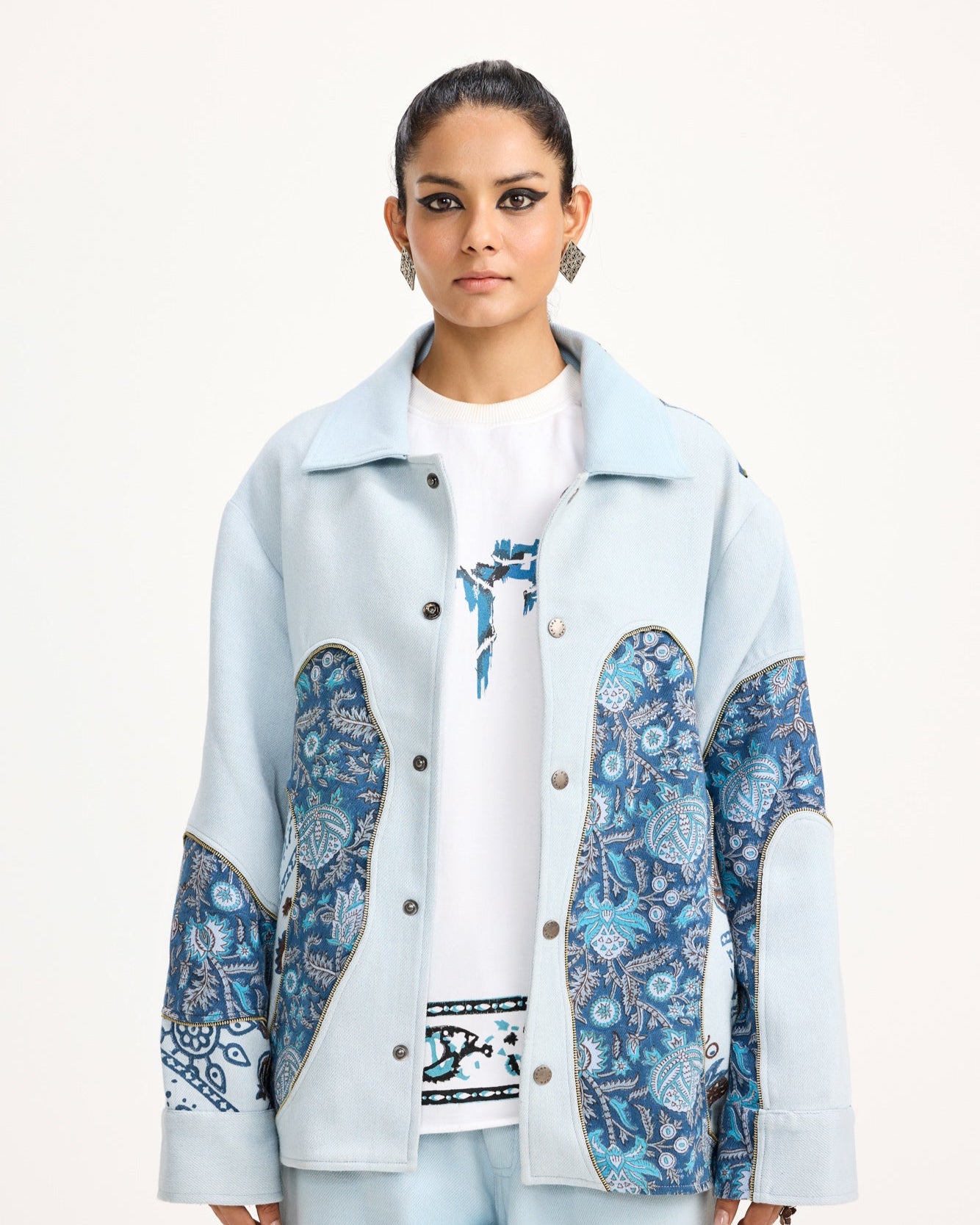 The Closure Handmade Jacket embodies the journey of acceptance and healing, where chaos and confusion finally give way to clarity. Each stitch tells the story of a person who has navigated the depths of irrationality and negative thoughts, only to emerge with a sense of closure. This emotional narrative is woven into the fabric, quite literally. Handwoven by fourth-generation artisan Pramod ji and block printed by Pankaj Sonawa ji, this jacket is entirely crafted by hand, with zero electricity consumed in the process. The zipper-teeth patchwork along the edges reflects the tension and eventual release of inner turmoil, while the raw finish symbolizes the beauty of a journey toward peace. The craftsmanship behind this piece honours traditional methods, yet it carries a deeply modern story of resilience, self-acceptance, and healing.