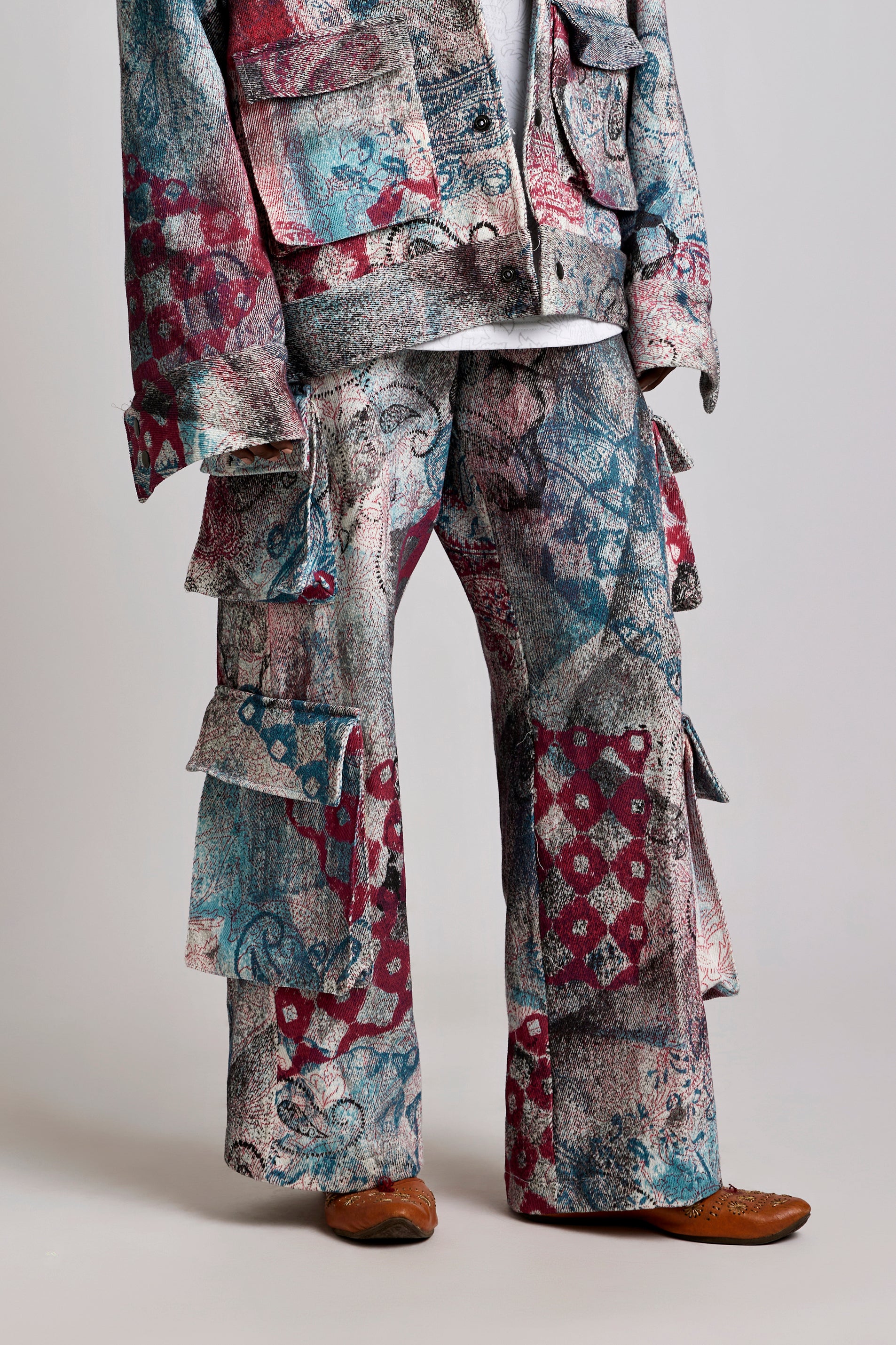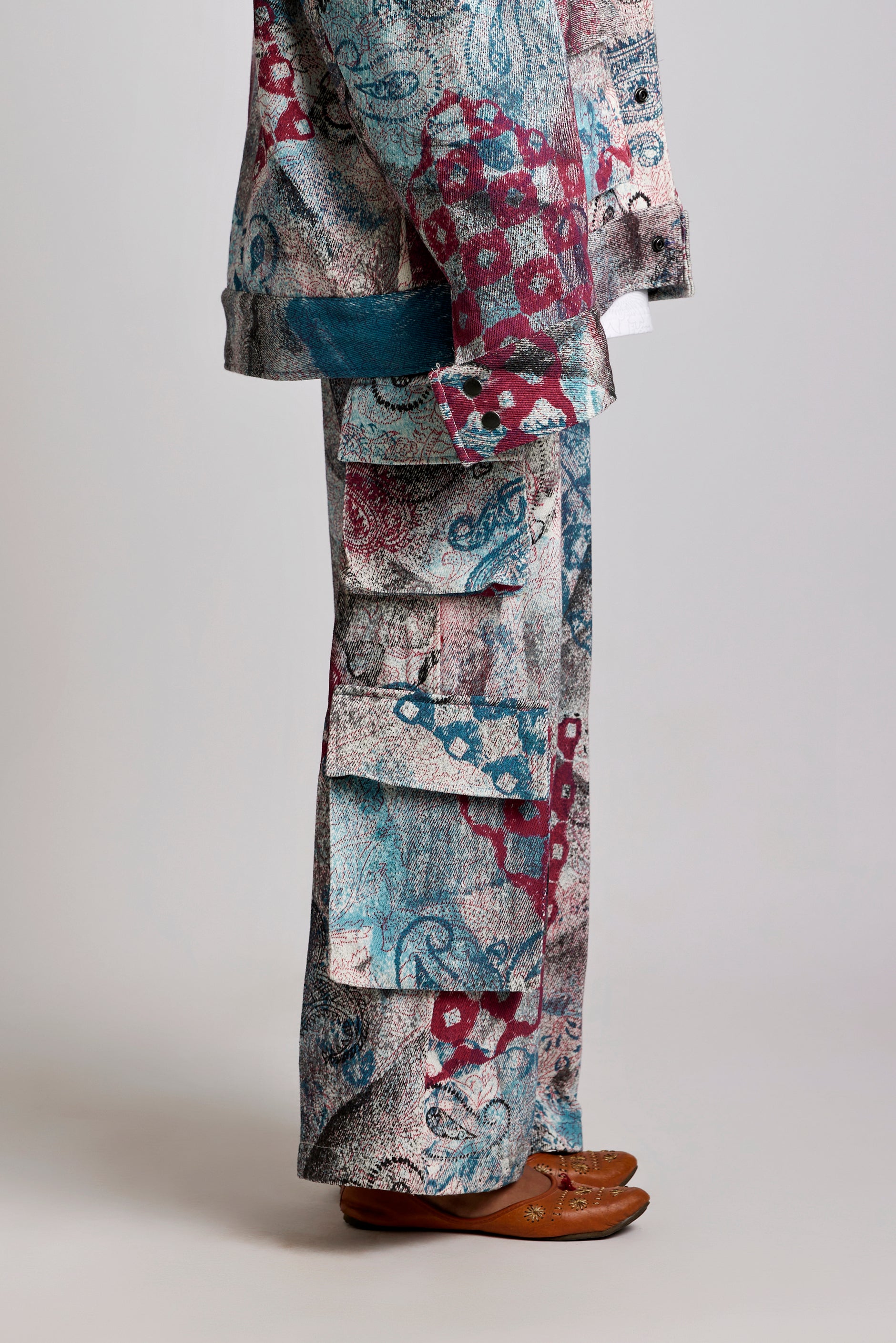 The Painter’s Handmade Pant is a heartfelt tribute to the artist's life, embodying the vibrant chaos and colors within their mind. Crafted from 100% Khadi Denim by fourth-genearation artisans Pramod Ji and Hari Om Ji, it undergoes a meticulous six-phase block printing process. Collaborating closely with the creative director, the fabric is transformed into wearable art through intricate hand painting and block printing techniques. Each piece is a celebration of uniqueness, with no two alike, bearing its own distinct character and charm.