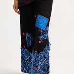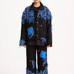 This entirely handmade piece is a delicate juxtaposition of love’s outward beauty and the inner chaos of emotions. Crafted with intricate metal buttons and tags, it mirrors the tangled thoughts and dilemmas one faces in the journey of love. The handwoven fabric by fourth-generation artisan Pramod ji serves as a canvas for this emotional narrative, with free edges and artistic detailing that evoke a sense of turmoil beneath the surface. Though adorned with soft floral elements, the design subtly hints at the storm brewing within—a chaotic dance of feelings that is as raw as it is beautiful. The blue tones and handcrafted flourishes capture the unpredictability of love, making this shirt not just an artistic garment but a wearable expression of emotional complexity.