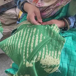 - Kantha embroidery using cotton or silk threads in various shades of green