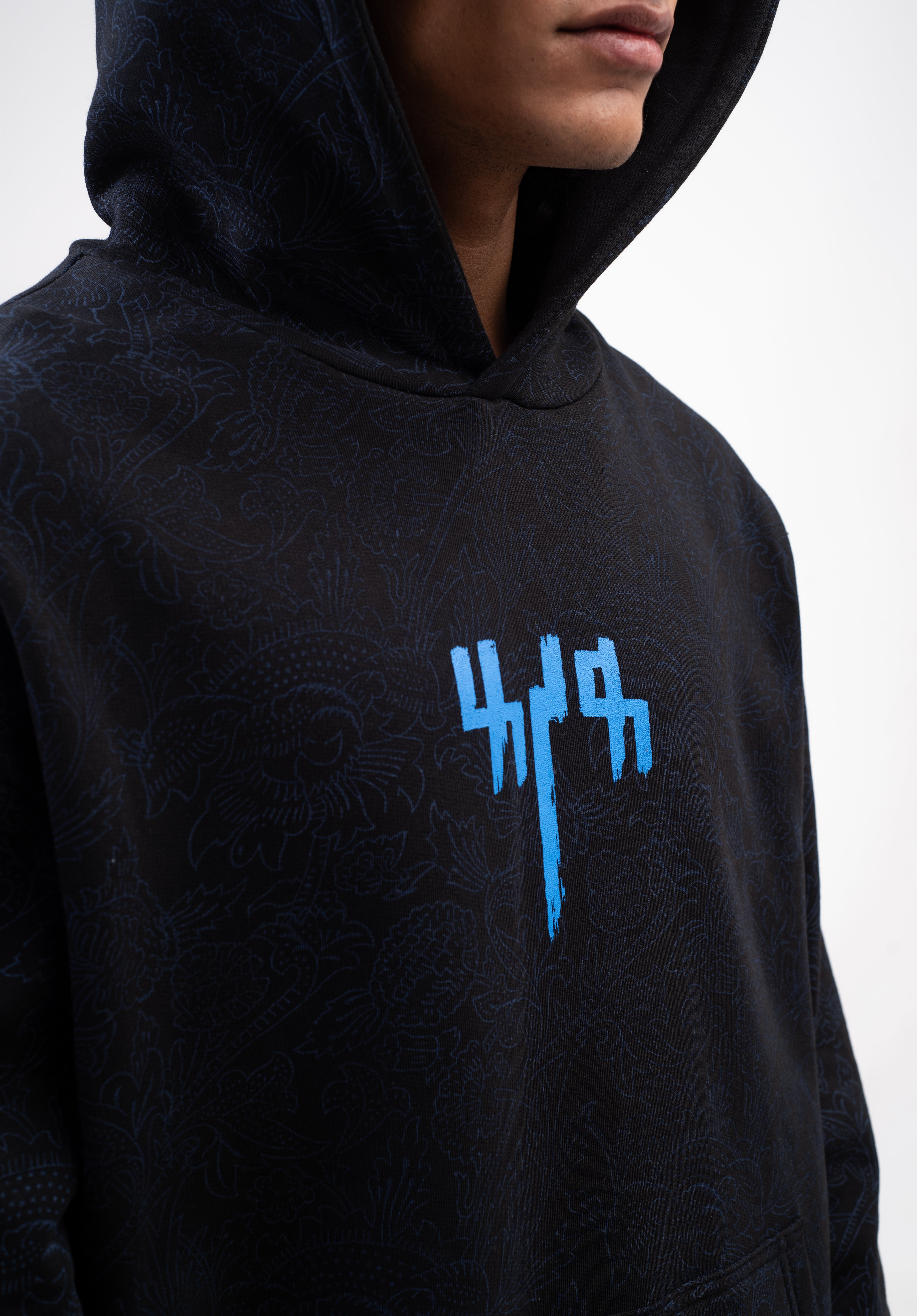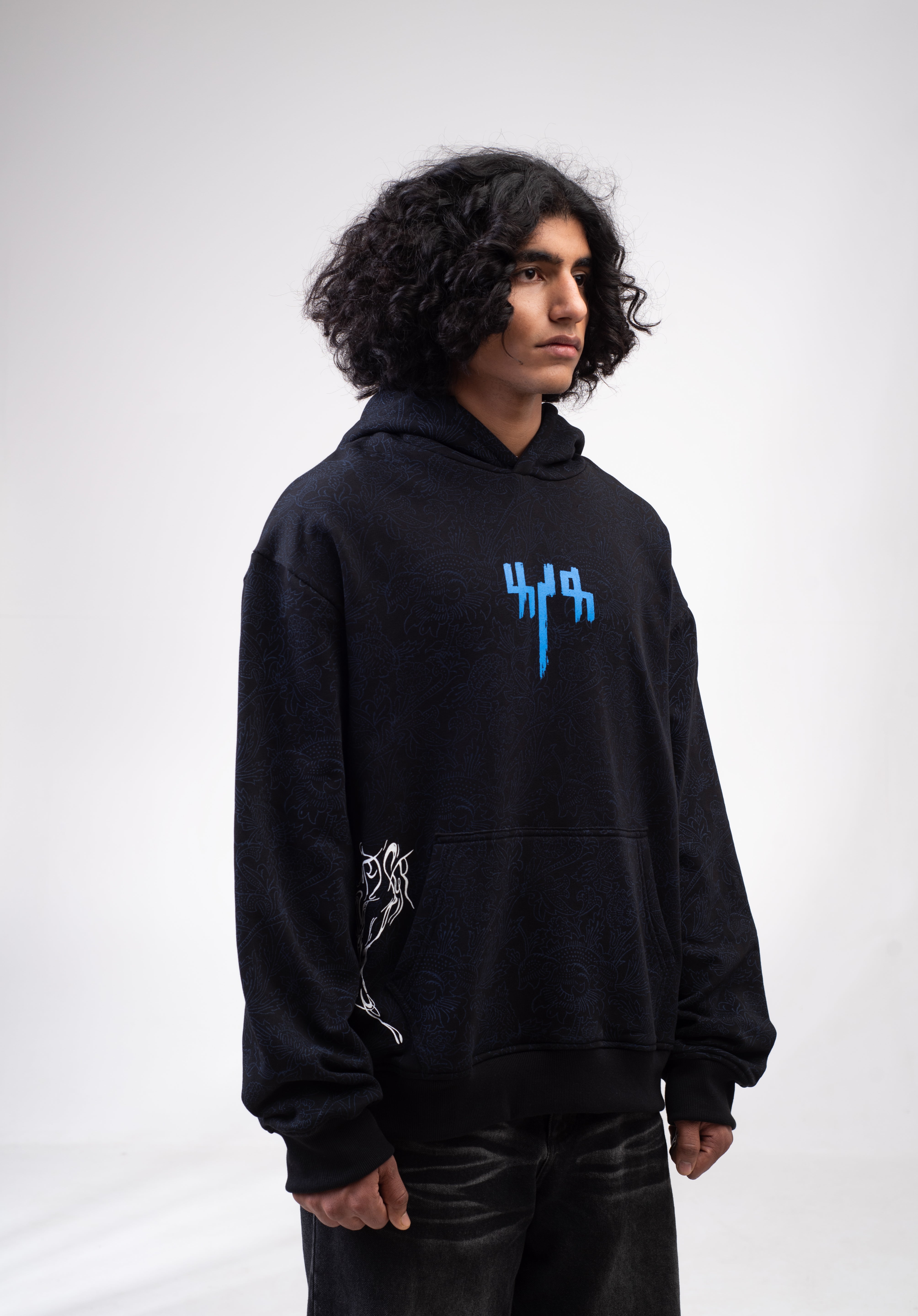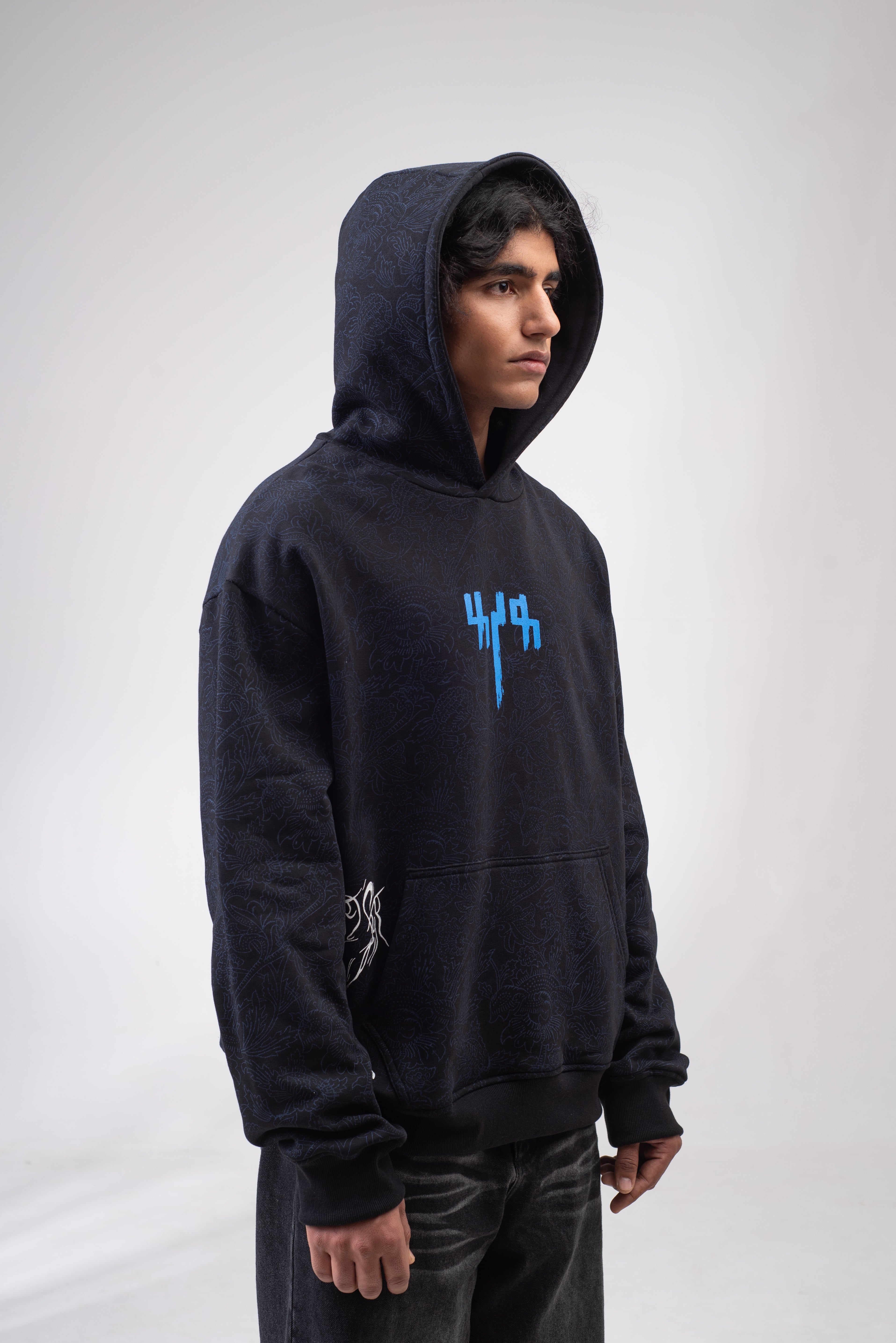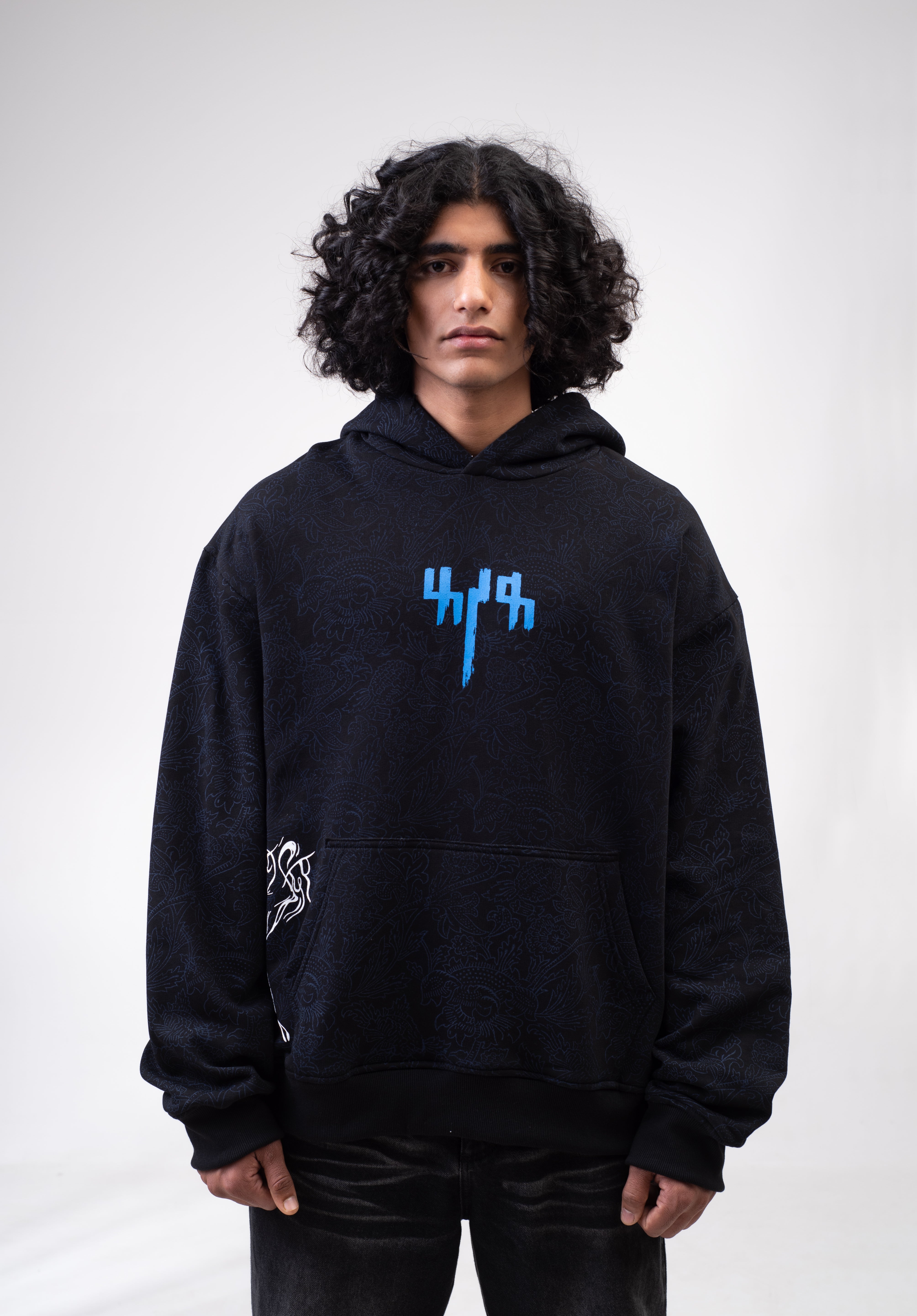 Capturing the essence of Indipop's queen, Asha Bhosle, this captivating hoodie is inspired by the lyrical masterpiece ‘Raat Akeli Hai, Bhuj Gye Diye’. Hand block printing by artisan Hari Om Ji transforms the fabric into a whimsical canvas.