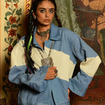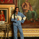 Exuding elegance and refinement, this jacket is a true delight for the eyes. Every aspect of this piece is meticulously handcrafted, showcasing the unparalleled skill of fifth-generation craftsmen. From the hand-dyed yarn to the handwoven and hand-spun fabric, each detail reflects a dedication to craftsmanship and tradition. The central section of the jacket, intricately woven by generational artists from Fatehpur Shekhawati, features a stunning interplay of two distinct colors of hand-dyed yarn, adding depth and richness to the design.