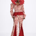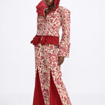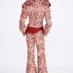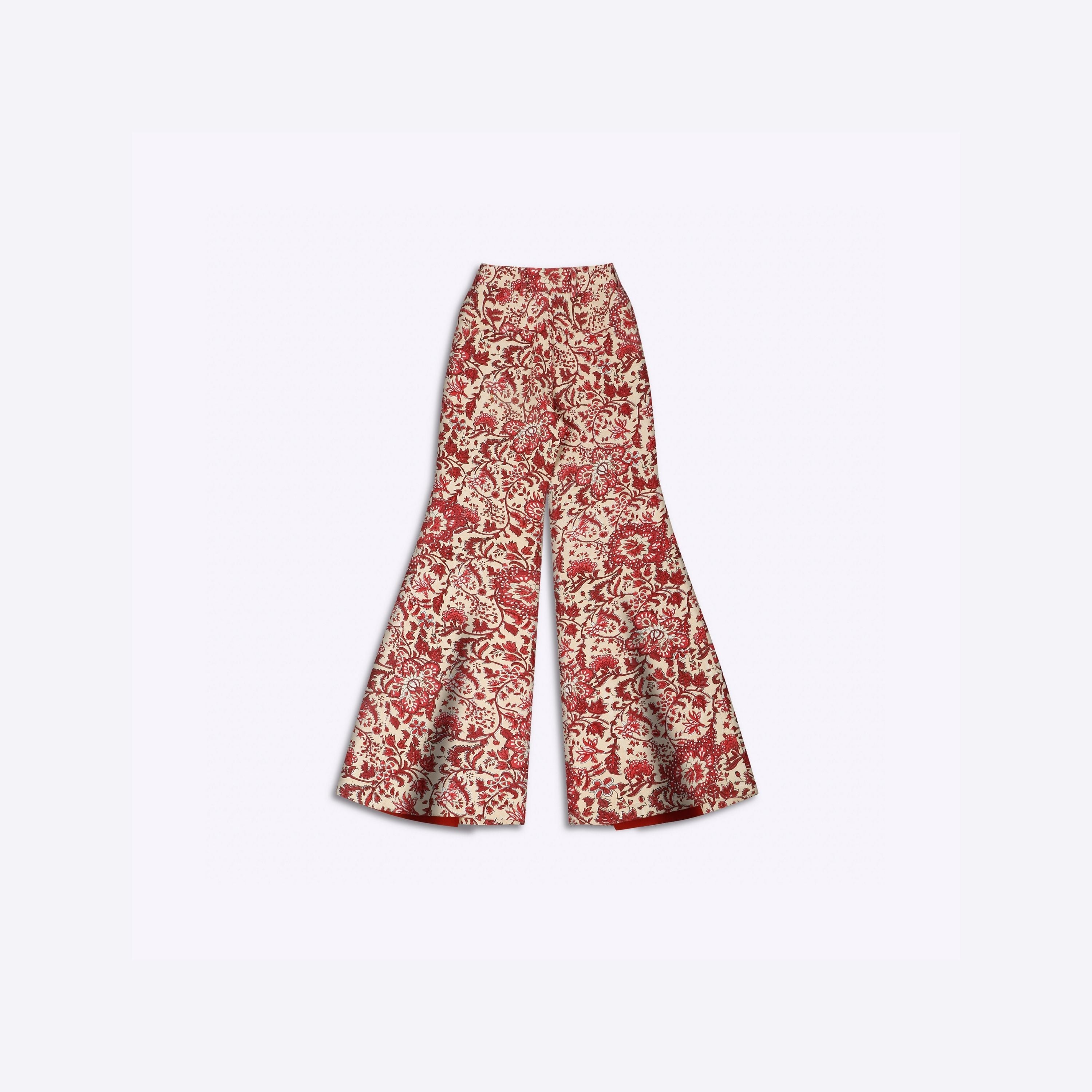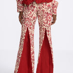 Bold in bloom, the Phoolon ki Rani Pants channel the drama of a queen and the delicacy of a garden in full flourish. Hand-blocked florals meet fierce tailoring, with striking front slits revealing a deep crimson undercurrent—symbolic of power beneath softness. The flare moves like a story unfolding, graceful yet grounded. These pants aren’t just worn—they’re performed. At Farak, we stitch audacity into elegance, one petal at a time.