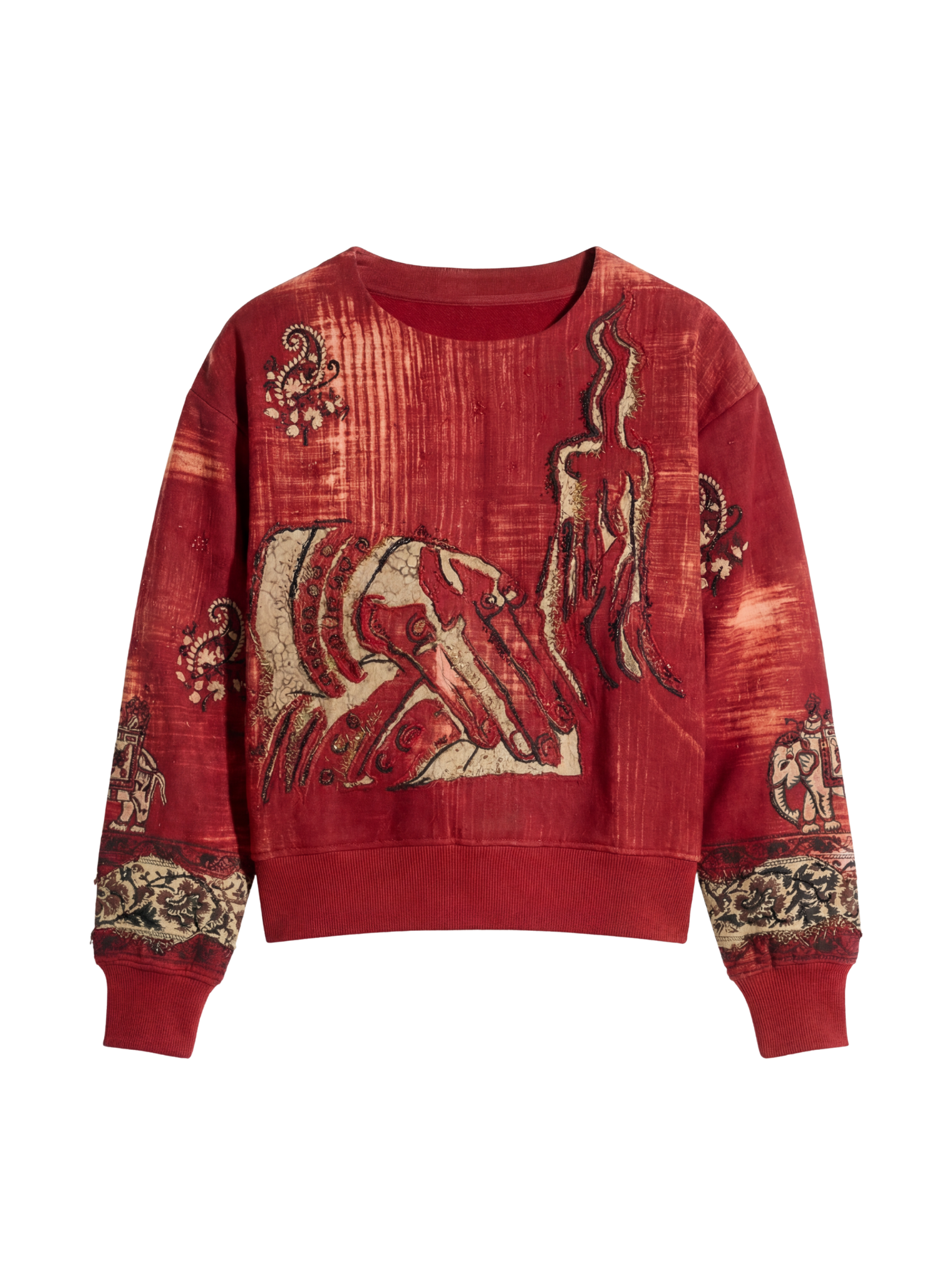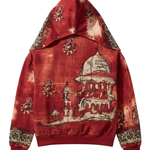 The Residual Hoodie is a layered narrative of surface, structure, and survival, crafted from 100% organic cotton and shaped through 28 hours of handweaving and artisanal work. Dyed using natural pigments, the hoodie features a richly textured, time-worn base brought alive through mud resist printing and handprinted wooden block motifs, creating depth and organic variation across the surface. The design is elevated with intricate Rabari hand embroidery and reverse appliqué detailing, forming architectural and paisley-inspired motifs that feel both ancestral and raw. Designed in a relaxed unisex silhouette, the hoodie balances comfort with visual intensity, standing as a piece where craft is not decorative but structural—each stitch, print, and layer bearing the imprint of memory, labor, and human touch.