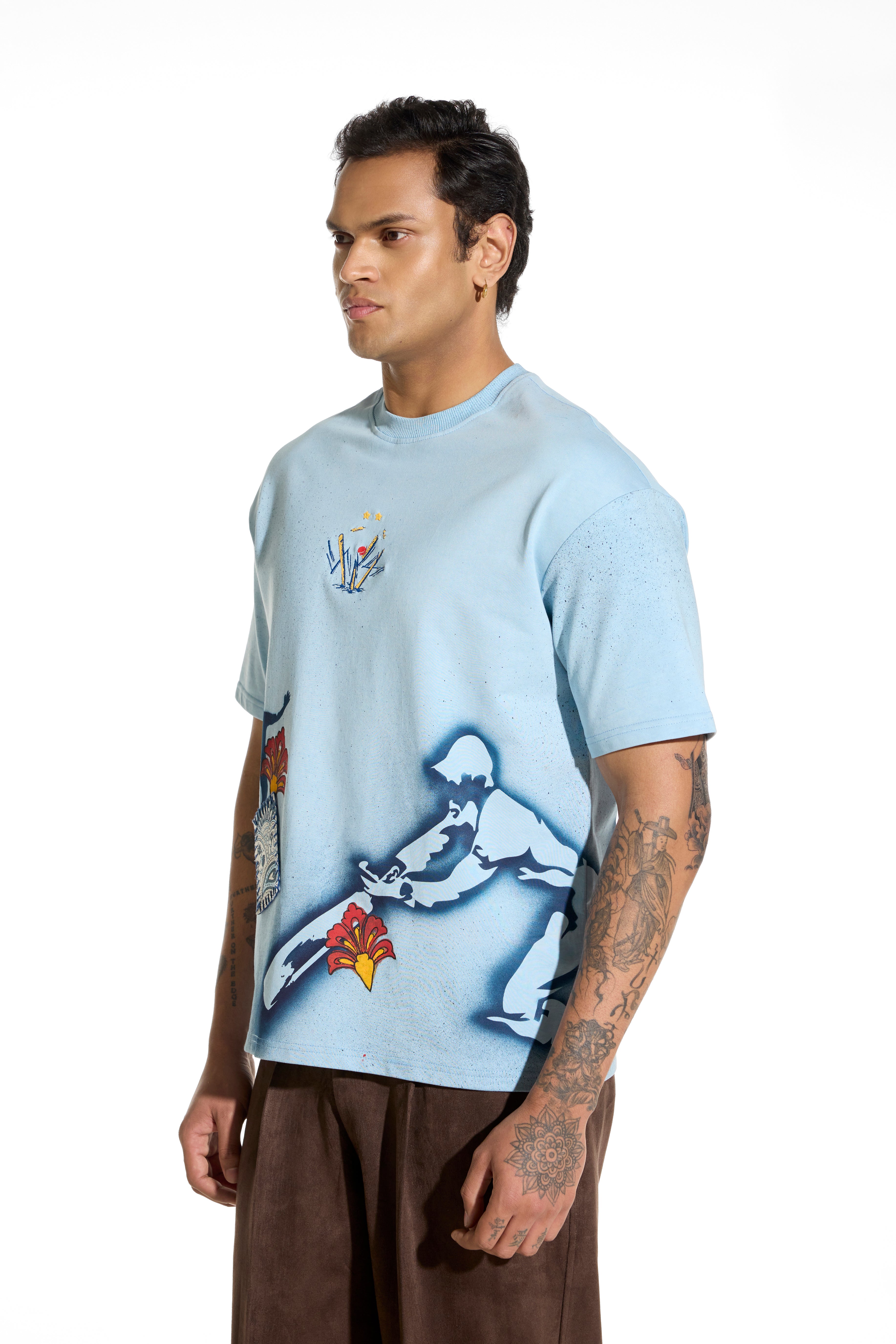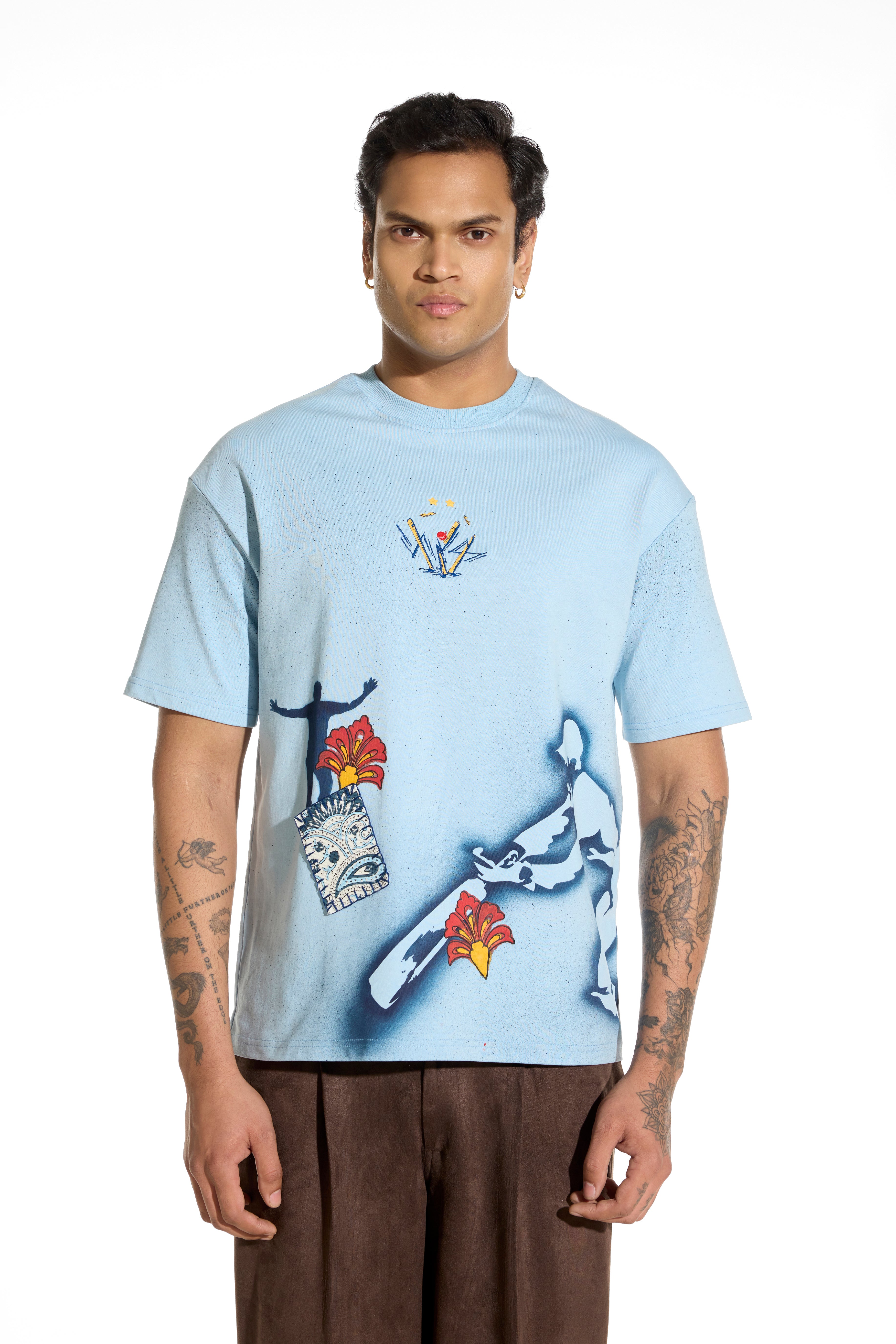 Crafted in 100% cotton with a relaxed silhouette, this tee blends stone wash, spray paint, and hand block printing, making every piece stand out on its own.