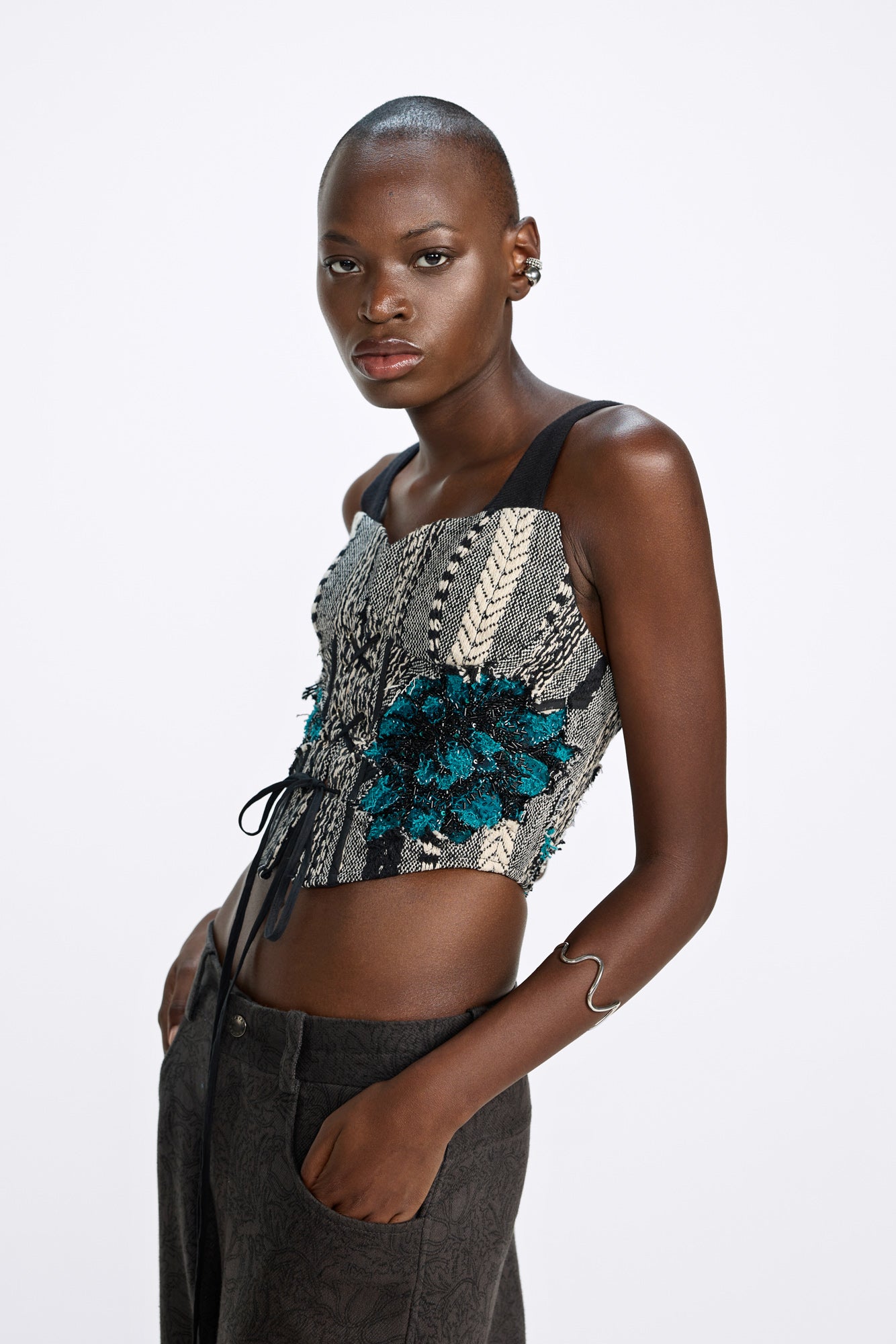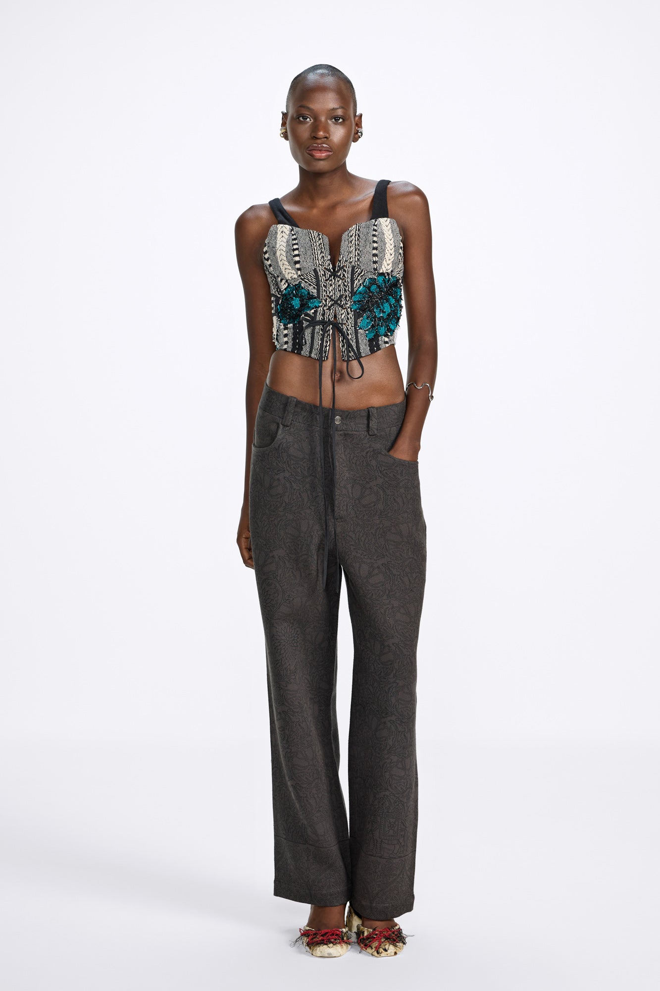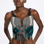 The Jacquard Handmade Corset reflects strength in every stitch—structured yet soulful. Handcrafted from rich jacquard, it mirrors tradition through a contemporary lens, blending intricate patterns with a silhouette that empowers. The lace-up detail nods to intimacy and individuality, allowing the wearer to shape their own story. Bold, textured, and unapologetically expressive, this corset captures Farak’s signature duality: heritage with an edge, memory with motion.