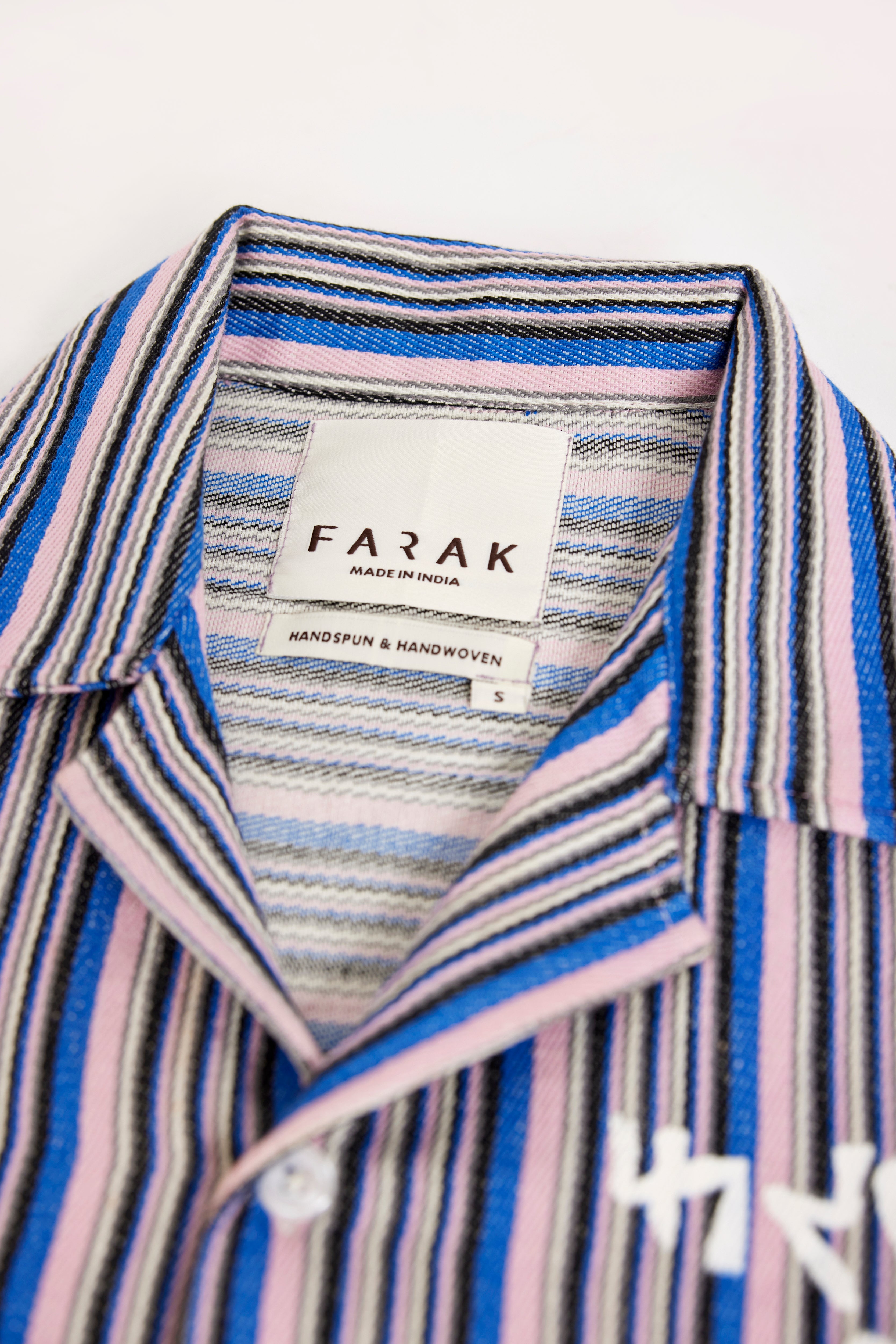 The Striped Shirt emerges as a testament to craftsmanship, meticulously handwoven and handspun by the skilled hands of Pramod Ji, a fourth-generation artisan from Fatehpur. Each thread tells a story, weaving together a mesmerizing array of multicoloured stripes.