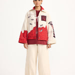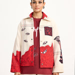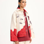 The Khayali Pulao Handmade Jacket is a visual exploration of the chaotic inner world that emerges when attachment and disillusionment collide. Inspired by the hallucinations and unnecessary scenarios we create in our minds when things go wrong in relationships, this artistic piece captures the turmoil of imaginary situations that can distort reality. Handwoven by Pramod ji and block-printed by Pankaj Sonawa, the fabric itself is a canvas of emotional storytelling. The intricate kantha embroidery adds depth and texture, mirroring the complexity of these imagined thoughts. This jacket is a testament to the meticulous craftsmanship that Farak champions, offering a wearable piece of art that blends traditional techniques with modern emotional expression.