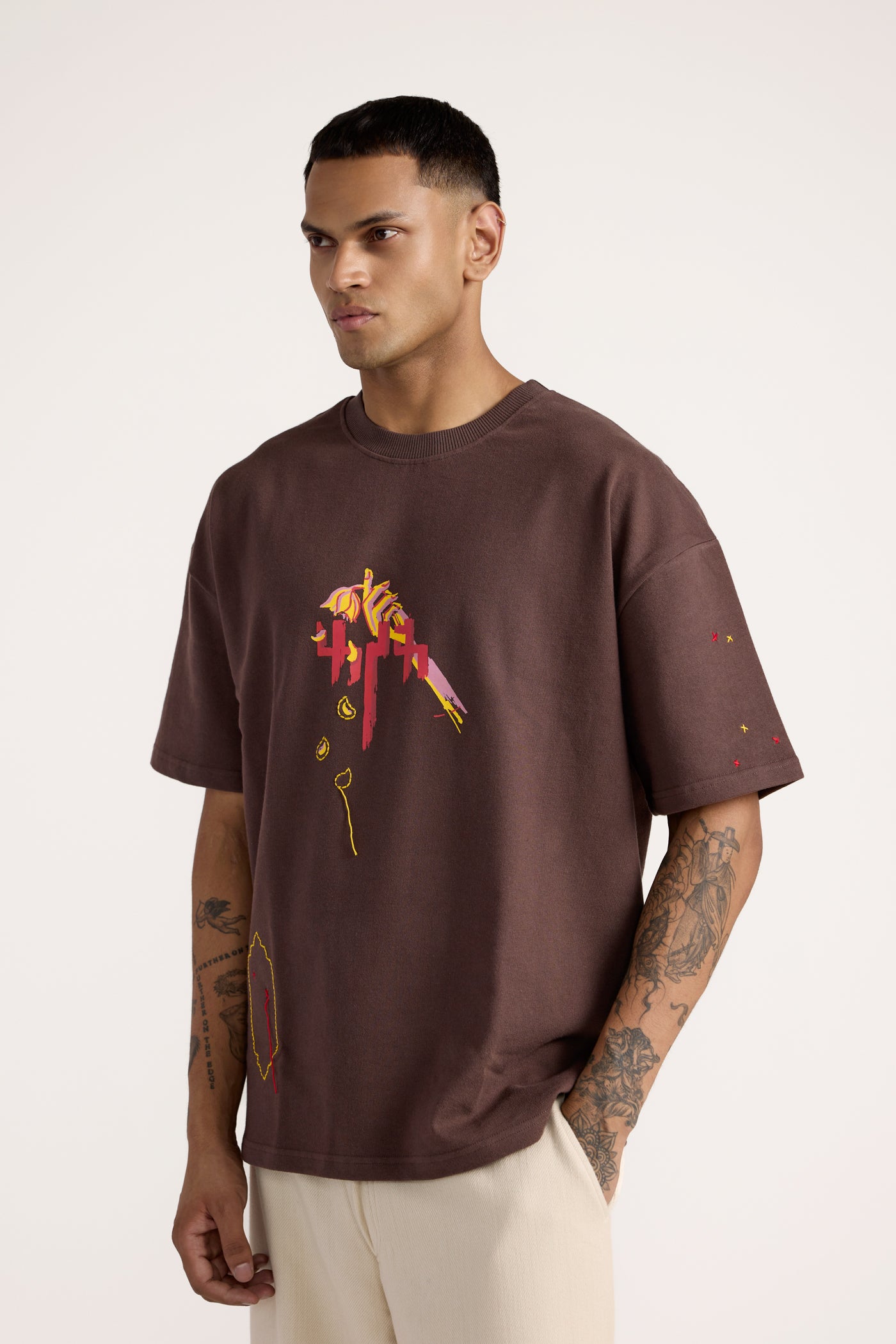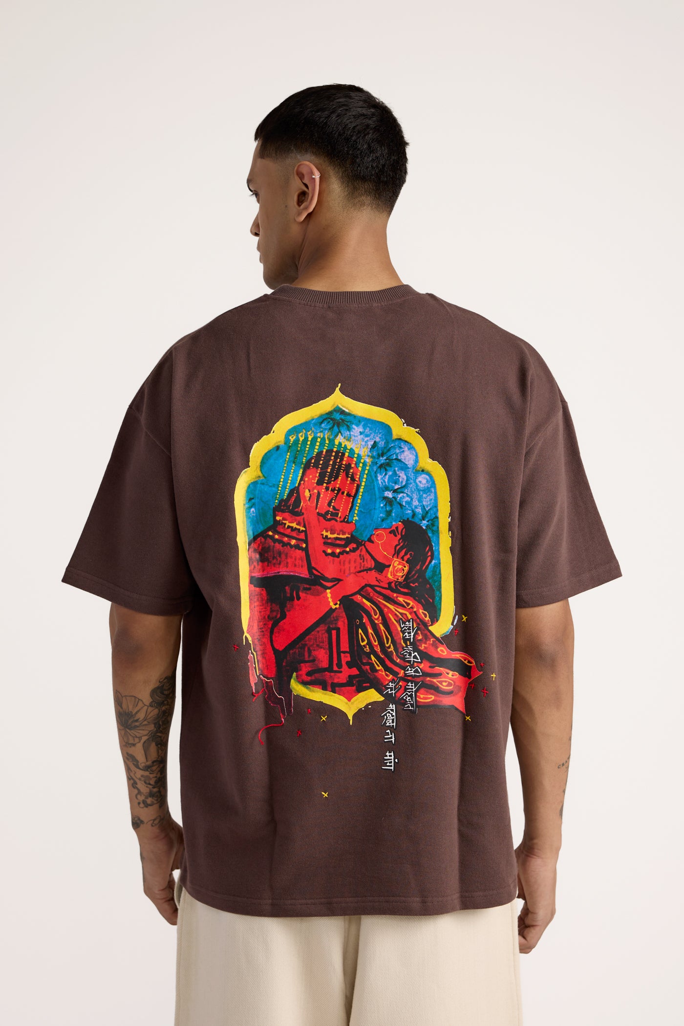 Love, in all its chaos and color. The Mehboob Tee is a visual letter to the ones who leave a mark—fiery, tender, unforgettable. The handcrafted graphic bleeds emotion, where passion drips like poetry and geometry anchors memory. Every thread pulses with longing and warmth, turning heartbreak and hope into wearable art. It’s bold, it’s raw, it’s real—just like every great love story.