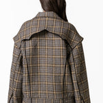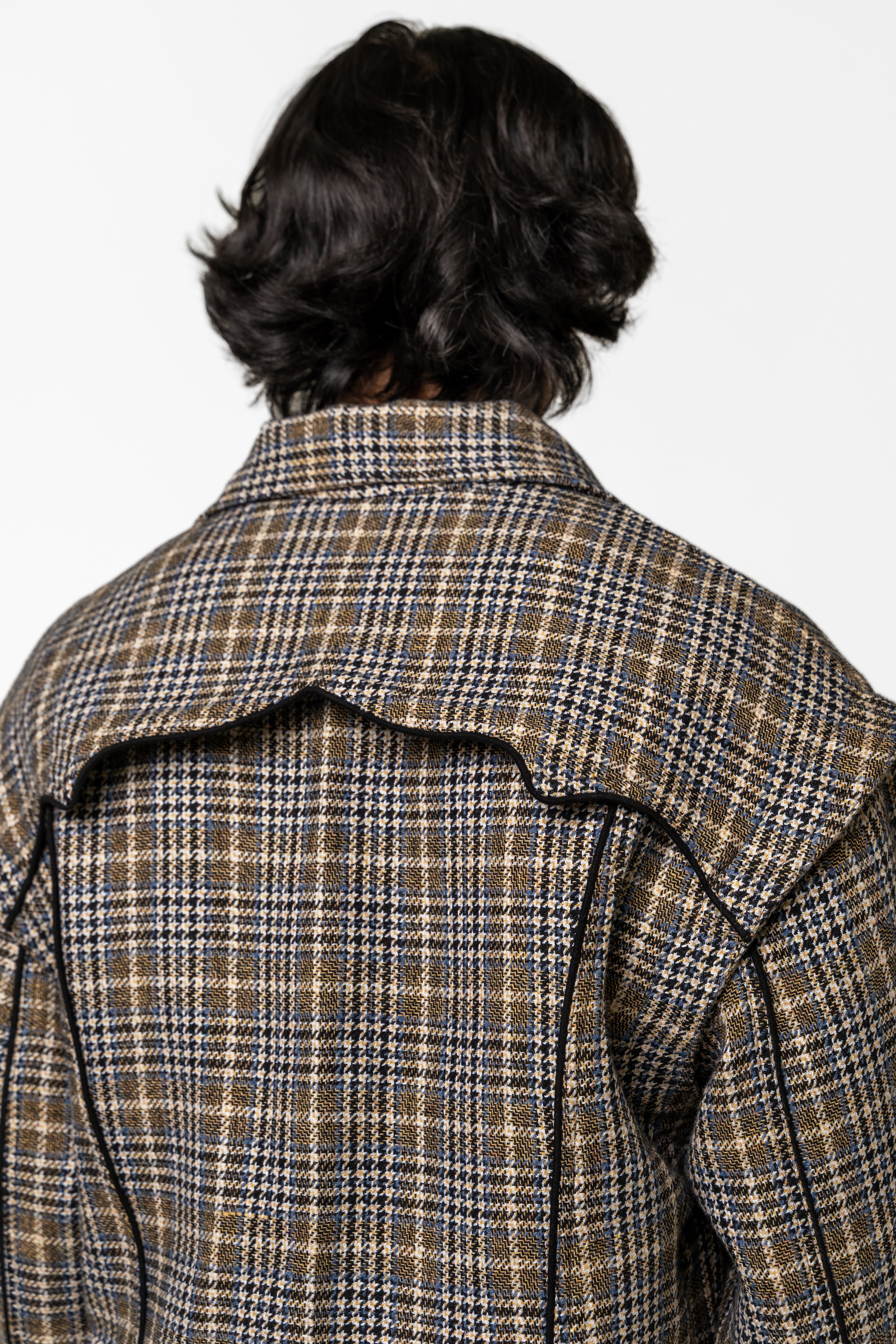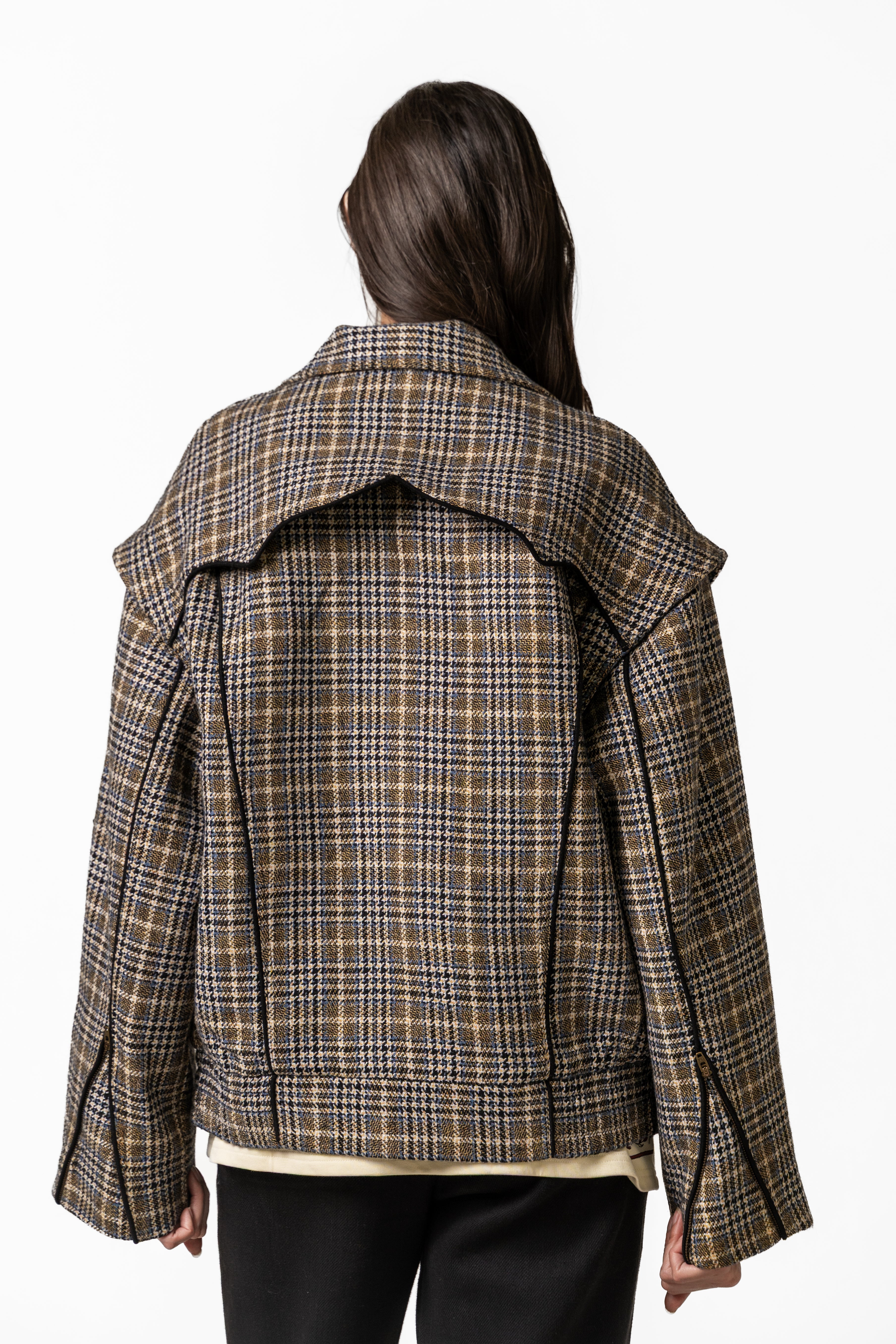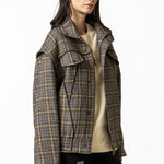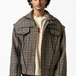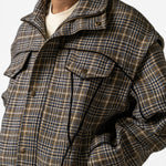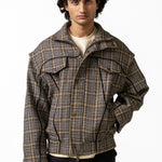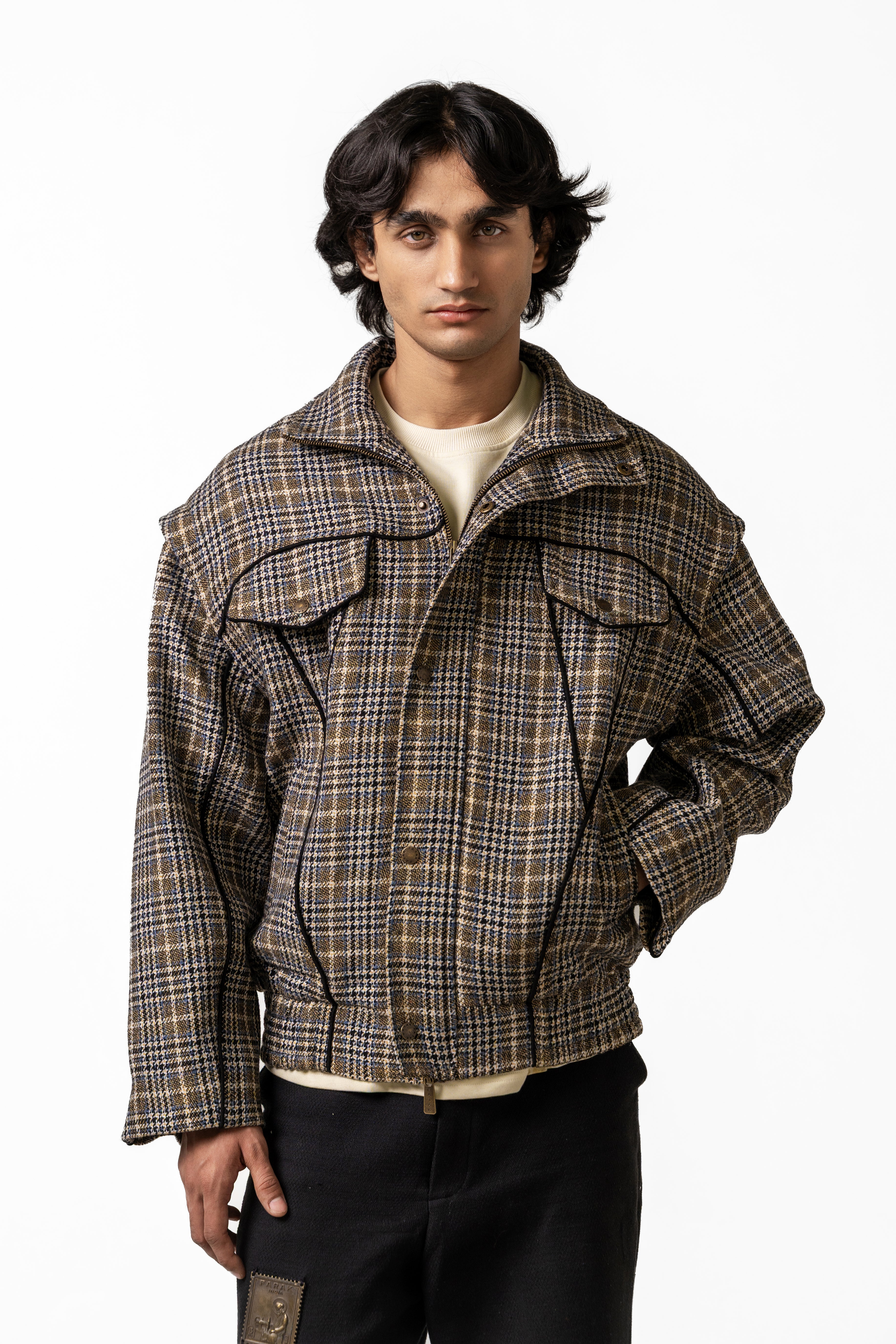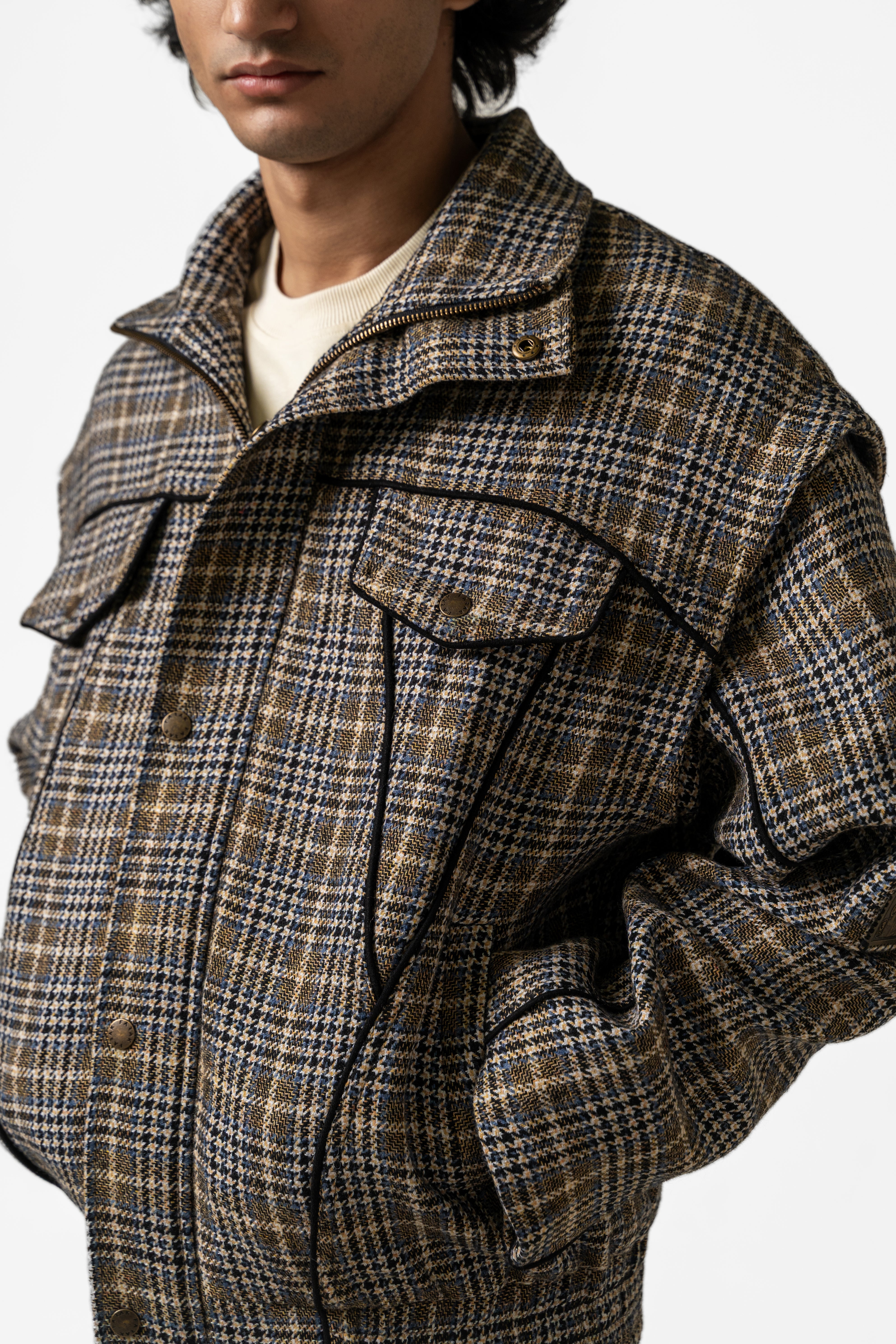 .The Plaid Bomber Jacket stands out with its bold, exaggerated shoulder design, giving it a structured and confident silhouette that instantly elevates the overall look. Crafted in a rich, textured plaid fabric, the jacket blends earthy tones with classic patterning, making it both visually striking and timeless. It features a dual-closure front combining a smooth zipper and secure snap buttons, ensuring both style and practicality. Further enhancing its modern appeal, the zipper detailing on the sleeves adds a sharp, contemporary touch. With clean seam lines, spacious pockets, and a well-built form, this jacket offers a perfect balance of durability, warmth, and statement-making design, ideal for those who want their winter wear to feel refined, premium, and effortlessly standout.