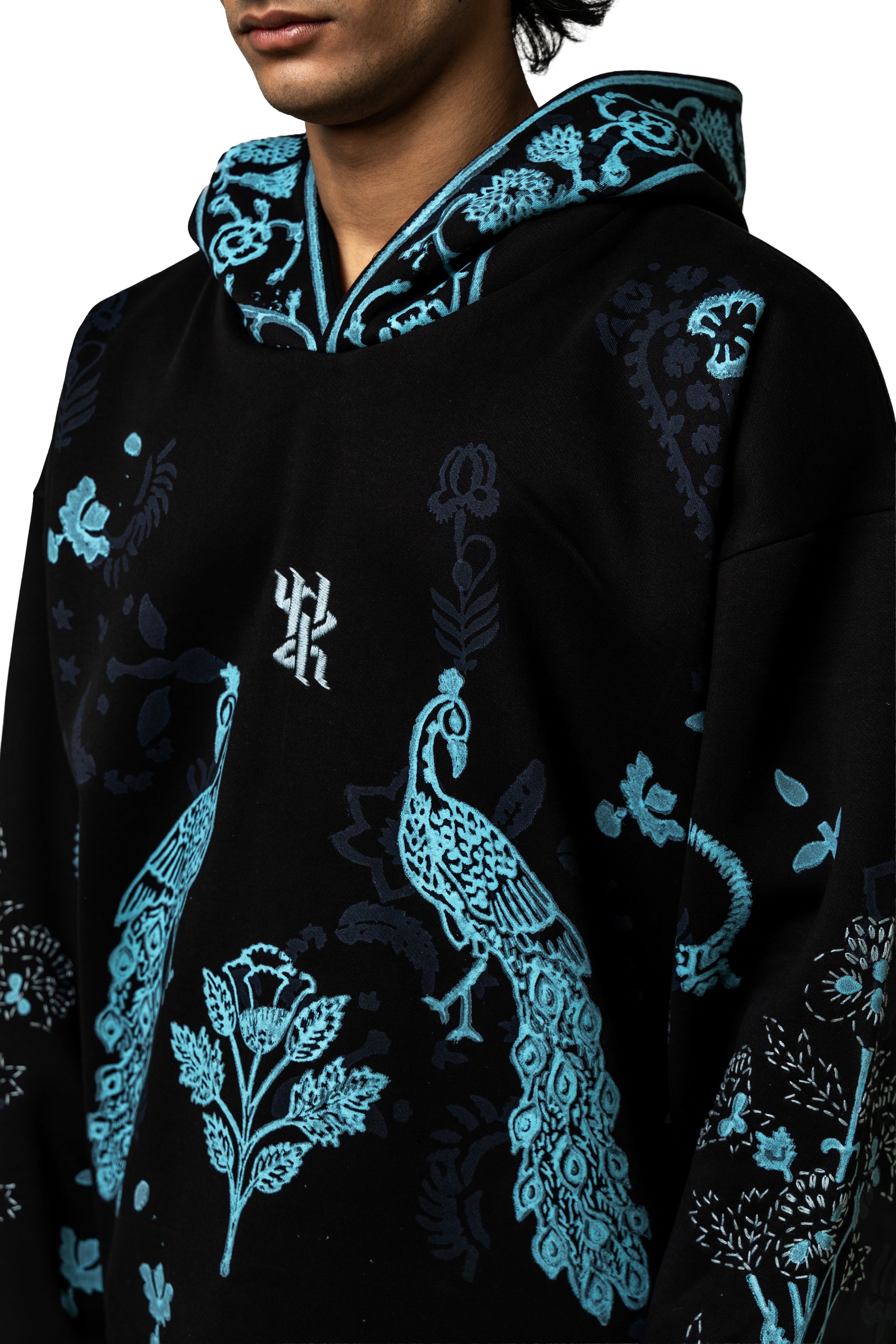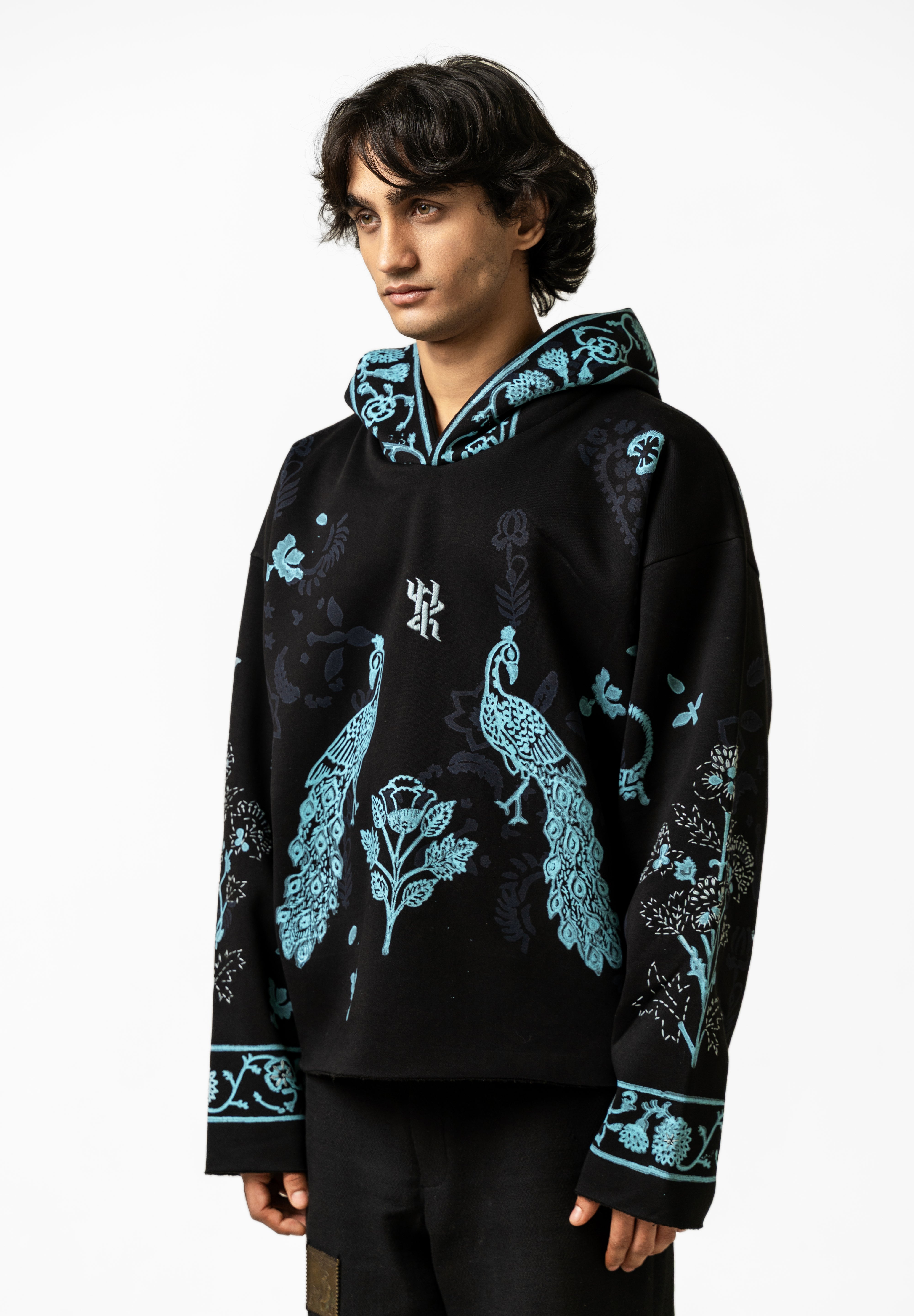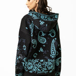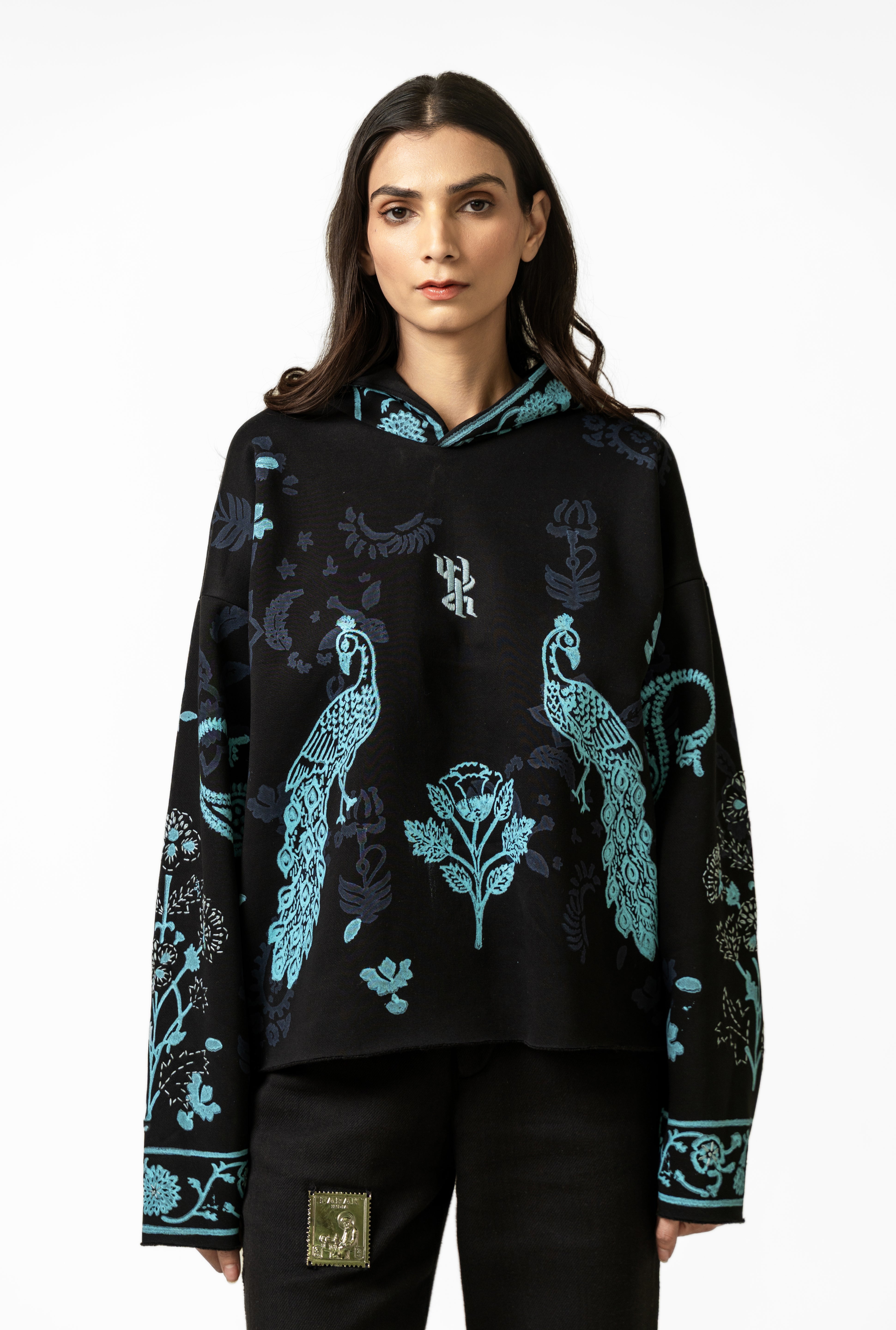 The Sapphire Handmade Hoodie is crafted from soft, durable poly-cotton fleece and elevated with rich artisanal detailing that brings the piece to life. Featuring an intricately hand-embroidered logo at the chest, the hoodie showcases beautifully arranged handblock-printed motifs inspired by traditional textile art, designed to stand out like sapphire accents against the fabric. The surface is further enhanced with kantha embroidery throughout, adding layers of texture, movement, and handcrafted charm that trace the contours of the prints. The relaxed silhouette, spacious hood, and clean finishing make it both comfortable and statement-worthy, blending cultural craftsmanship with modern streetwear appeal. The Sapphire Handmade Hoodie is a wearable reflection of precision, color, and contemporary artistry—crafted for those who value detail in every stitch.