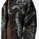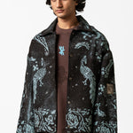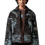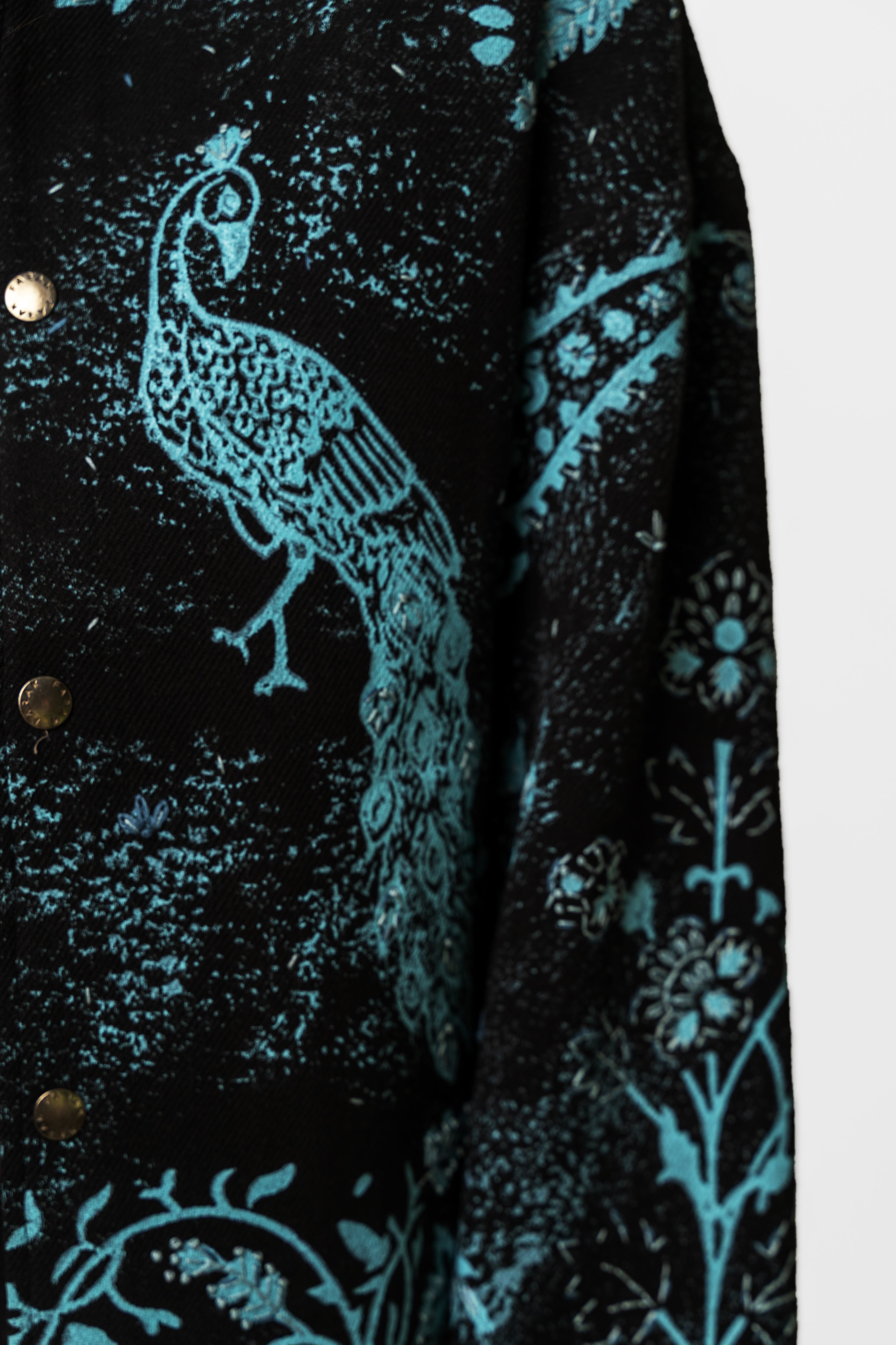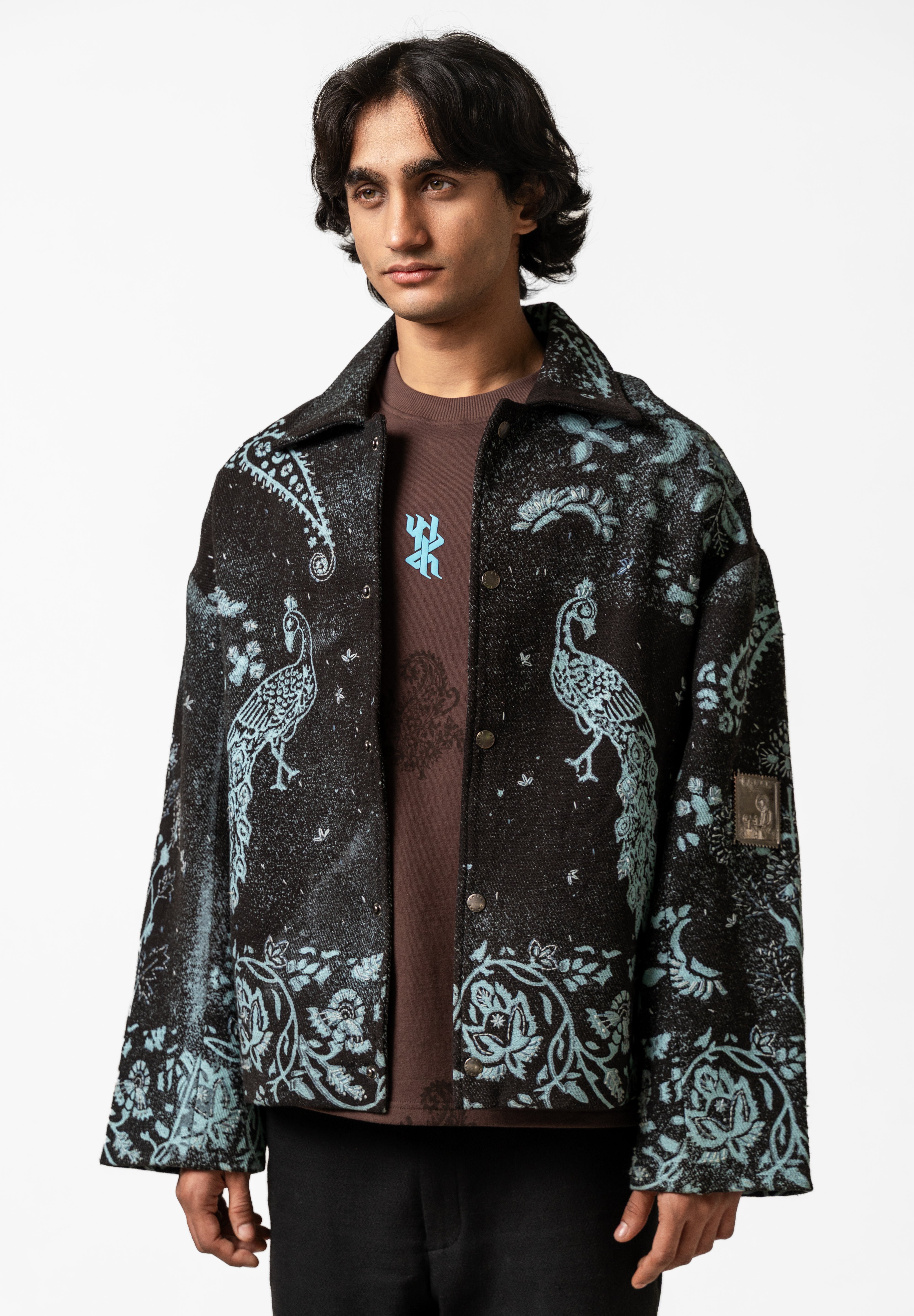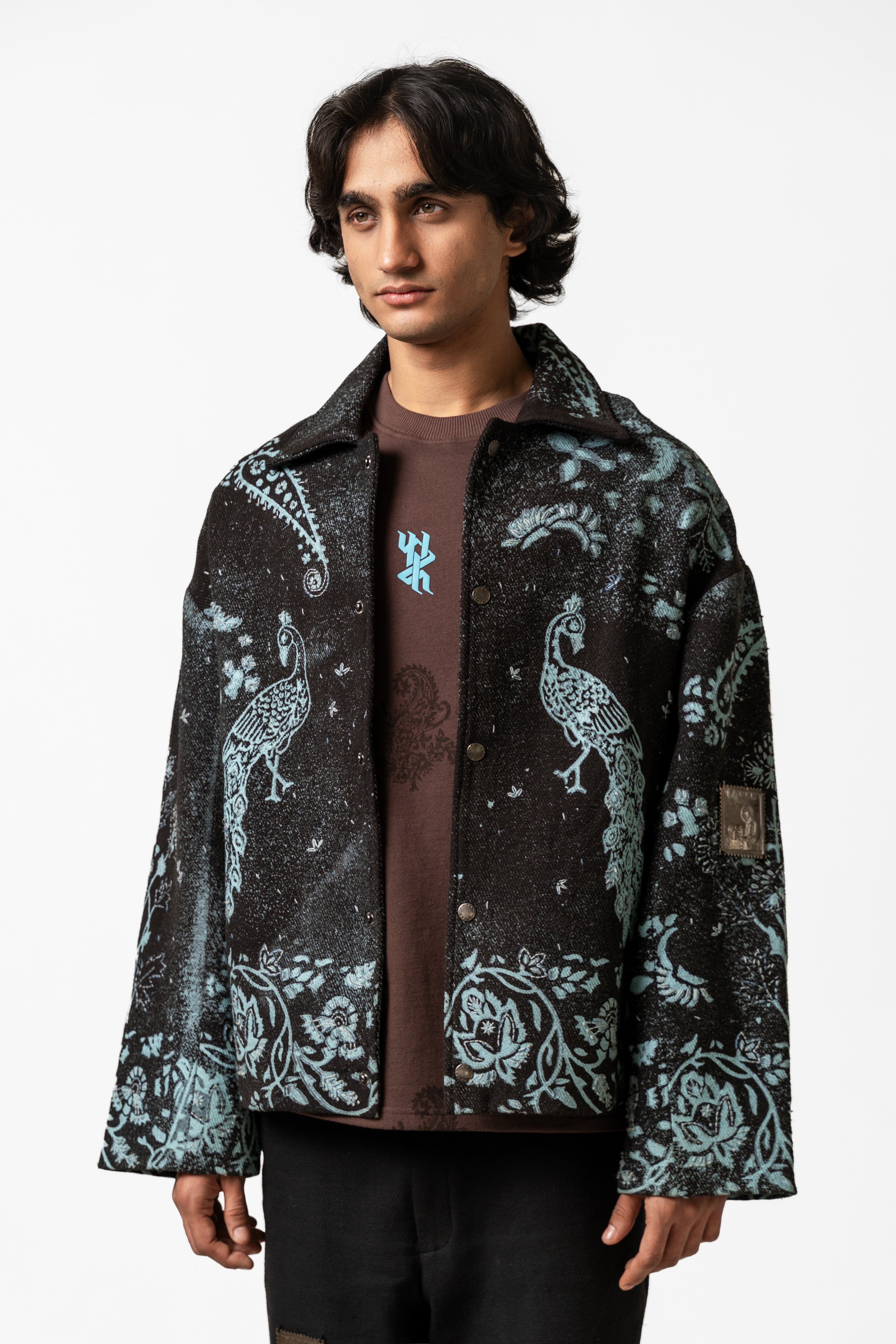 The Sapphire Handmade Jacket is crafted from 100% organic cotton, woven on traditional handlooms with over 12 hours of dedicated weaving, giving the fabric a rich, authentic texture that reflects true artisanal craft. The surface is adorned with intricate hand block–printed motifs, arranged thoughtfully to highlight the jacket’s structure and create a harmonious sapphire-inspired visual rhythm. Delicate kantha embroidery runs throughout, adding depth, movement, and handcrafted character to every panel of the garment. A distinctive metal tag at the backside offers a refined signature touch, grounding the jacket in contemporary identity while preserving its traditional soul. With its clean silhouette, cultural artistry, and meticulous handmade details, the Sapphire Handmade Jacket stands as a sophisticated blend of craft, comfort, and timeless design.