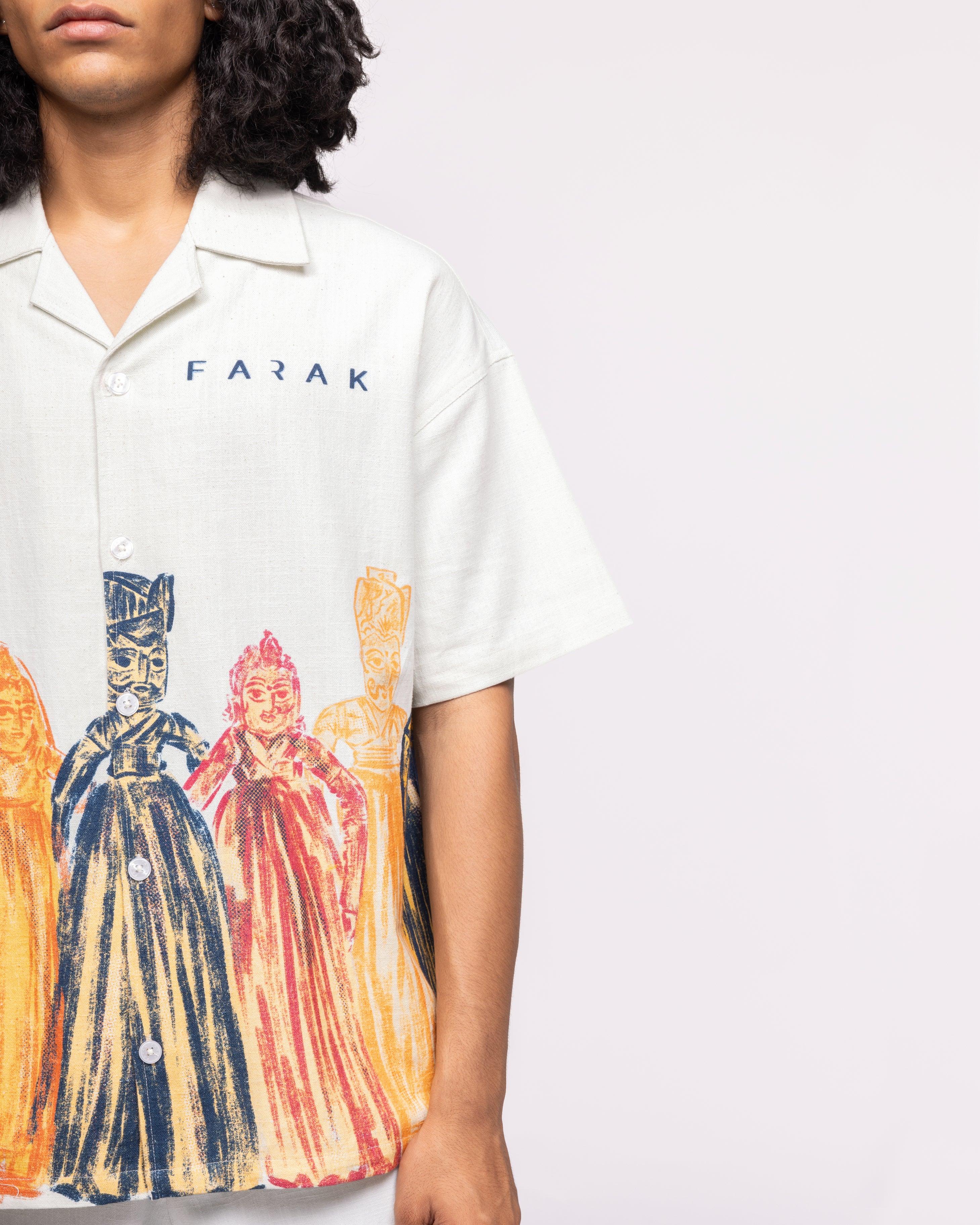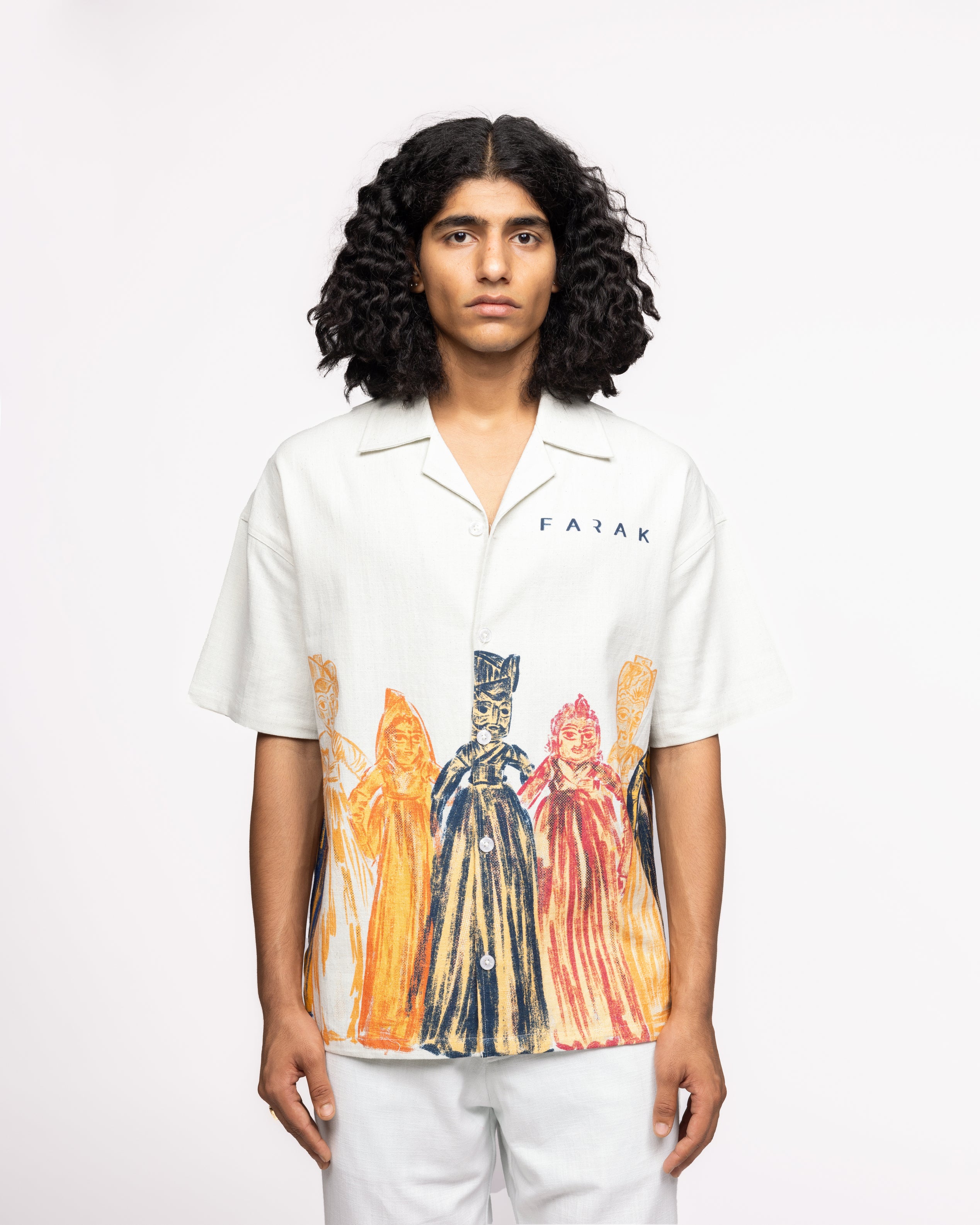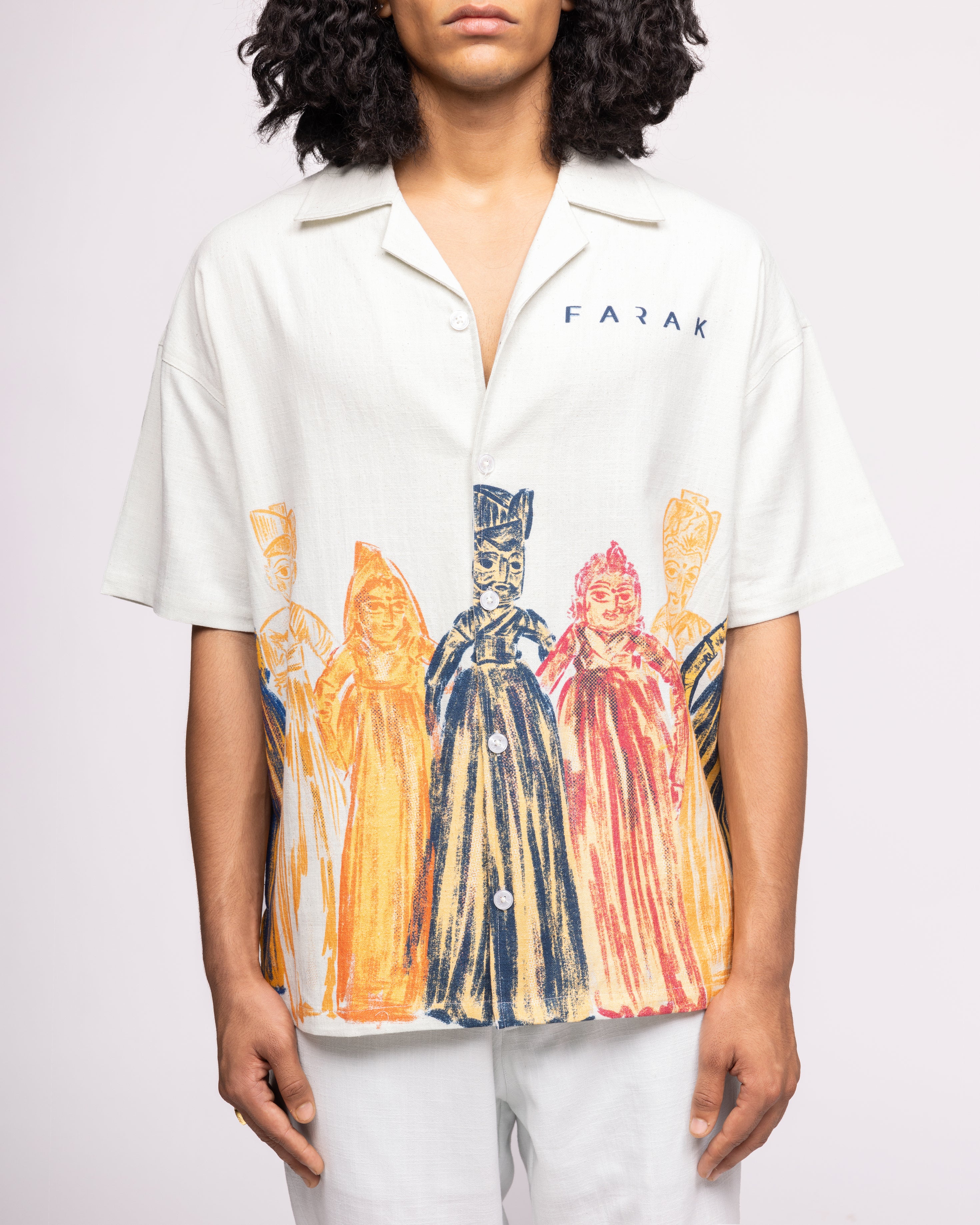 "The World's a Stage Pant, crafted from 100% organic cotton, merges cultural heritage with timeless wisdom. This pant showcases digitally printed designs inspired by Rajasthani puppetry and William Shakespeare's iconic adage, "All the world’s a stage, and all the men and women merely players." Drawing from the vibrant colours and intricate details of Rajasthani puppets, the pant's design tells a captivating story. These puppets, central to Rajasthan's cultural heritage, dance across the fabric, symbolizing the theatrical essence of life. The digital printing process ensures vivid colours and precise details, perfectly capturing the fusion of cultural and literary themes. Our creative director, Rishabh has expertly combined these narratives into a single, wearable piece of art. The World's Stage Pant not only celebrates the rich tradition of puppetry but also pays homage to Shakespeare's profound words, inviting wearers to reflect on the roles we all play in the grand theatre of life. This shirt is more than just clothing; it’s a tribute to the stories that shape our lives and the stages upon which we perform. It evokes nostalgia and intellectual curiosity.